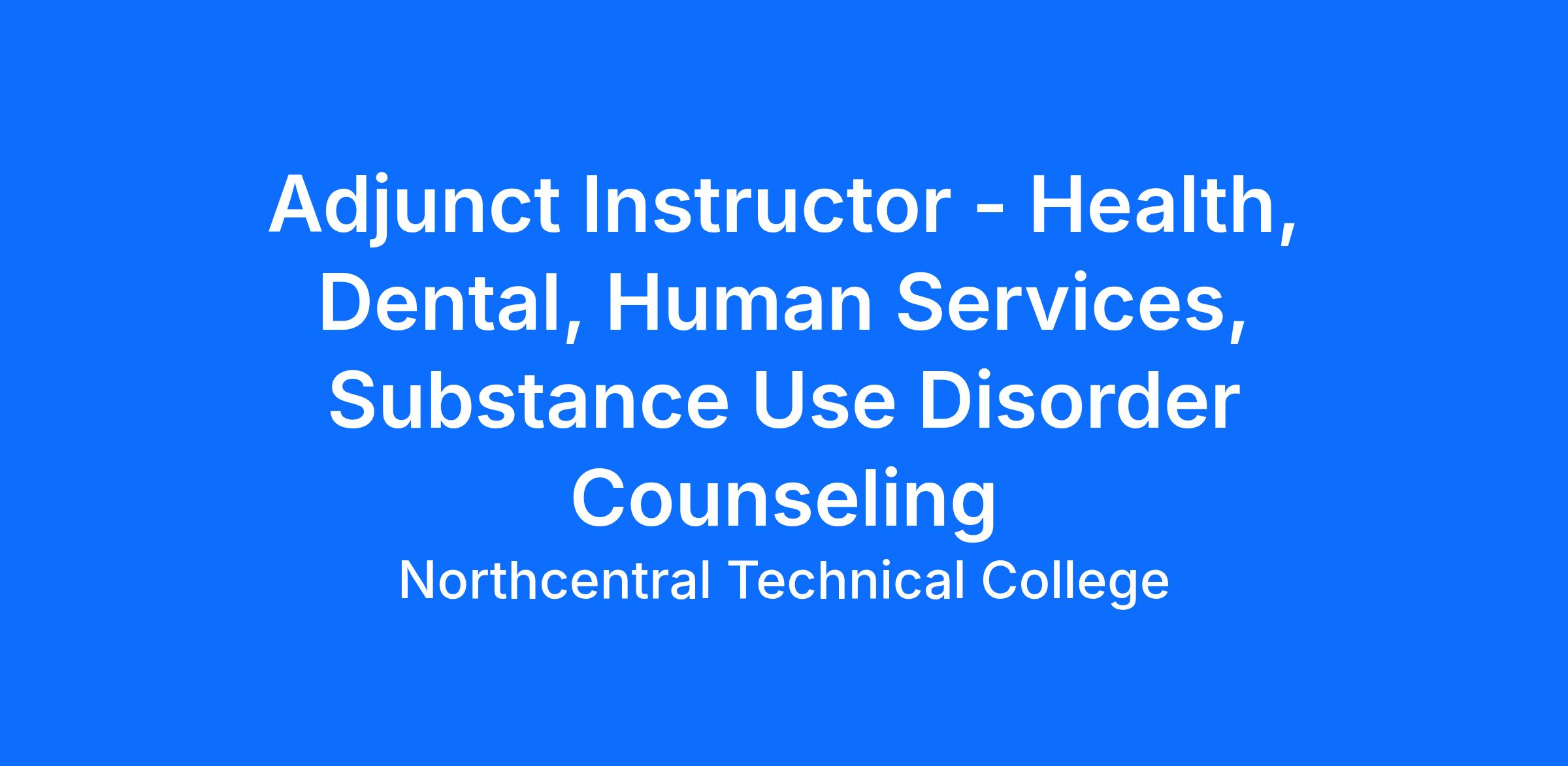 While there may not be an immediate need for an adjunct in every area, Northcentral Technical College (NTC) accepts applications regardless, in order to create a pool for when there may be a need. Upon successful submission of your application, you will be considered for future part-time adjunct instructor opportunities and your application will be on file as a potential candidate who could possibly fill a position if or when the need arises. Adjunct positions in this area include but are not limited to: