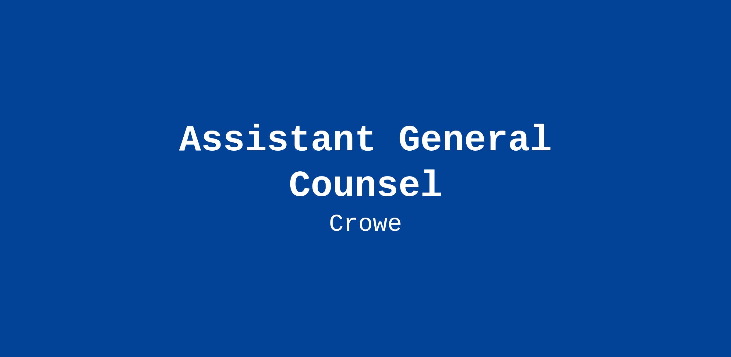 Crowe’s Firm Risk Management business unit and Legal Department are critical components of Crowe's organizational structure. The Assistant General Counsel focused on transactions will support the General Counsel and Legal Department leadership providing strategic, solutions-oriented legal counsel that enables the business while appropriately managing enterprise risk. Crowe’s Legal Department seeks acceptable ways to get to “yes” more often than “no.” To perform this function, the Assistant General Counsel must learn general firm practice in a wide variety of areas, proactively identify issues presenting risk to the firm, and act as a driver of good business process. A successful candidate will commit to learning Crowe’s multiple business lines at a detailed level and be a leader capable of developing and maintaining close working relationships with the firm’s partners, senior management, and cross-functional stakeholders.