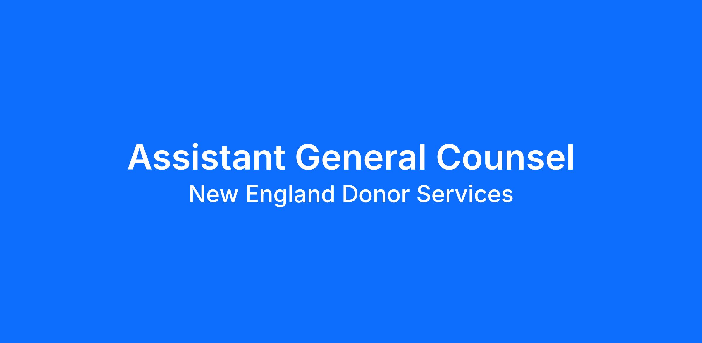 The Assistant General Counsel directly provides legal advice to the employees of New England Donor Services, Inc. and its subsidiary New England Organ Bank, Inc. (“NEDS”) assuring the appropriate consideration of strategic Legal issues and risk reduction in the achievement of the organization’s mission and goals. The Assistant General Counsel will provide legal advice and counsel in a variety of areas including general healthcare laws and regulations, laws and regulations governing organ procurement organizations and tissue recovery agencies, contract drafting and negotiation, employment and employee relations, health care compliance and corporate law. In addition, the Assistant General Counsel will assist the Chief Legal Officer in matters as required.