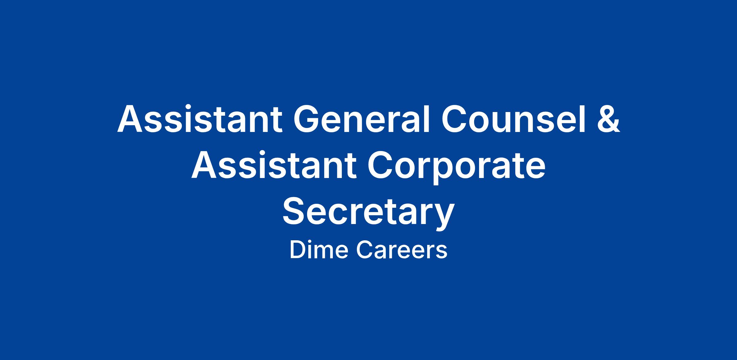 Summary: Dime Community Bank (Dime) is currently hiring for an Assistant General Counsel & Assistant Corporate Secretary (one role) at its Headquarters in Hauppauge, Long Island or one of its Corporate Offices in Manhattan (Midtown), New York. The Assistant General Counsel & Assistant Corporate Secretary provides comprehensive counsel and support to the bank across a range of legal, regulatory, and risk-related matters in various areas of expertise. The role primarily concentrates on assisting in the assessment and practical management of legal risks and ensuring compliance with applicable laws and regulations while enabling business growth.