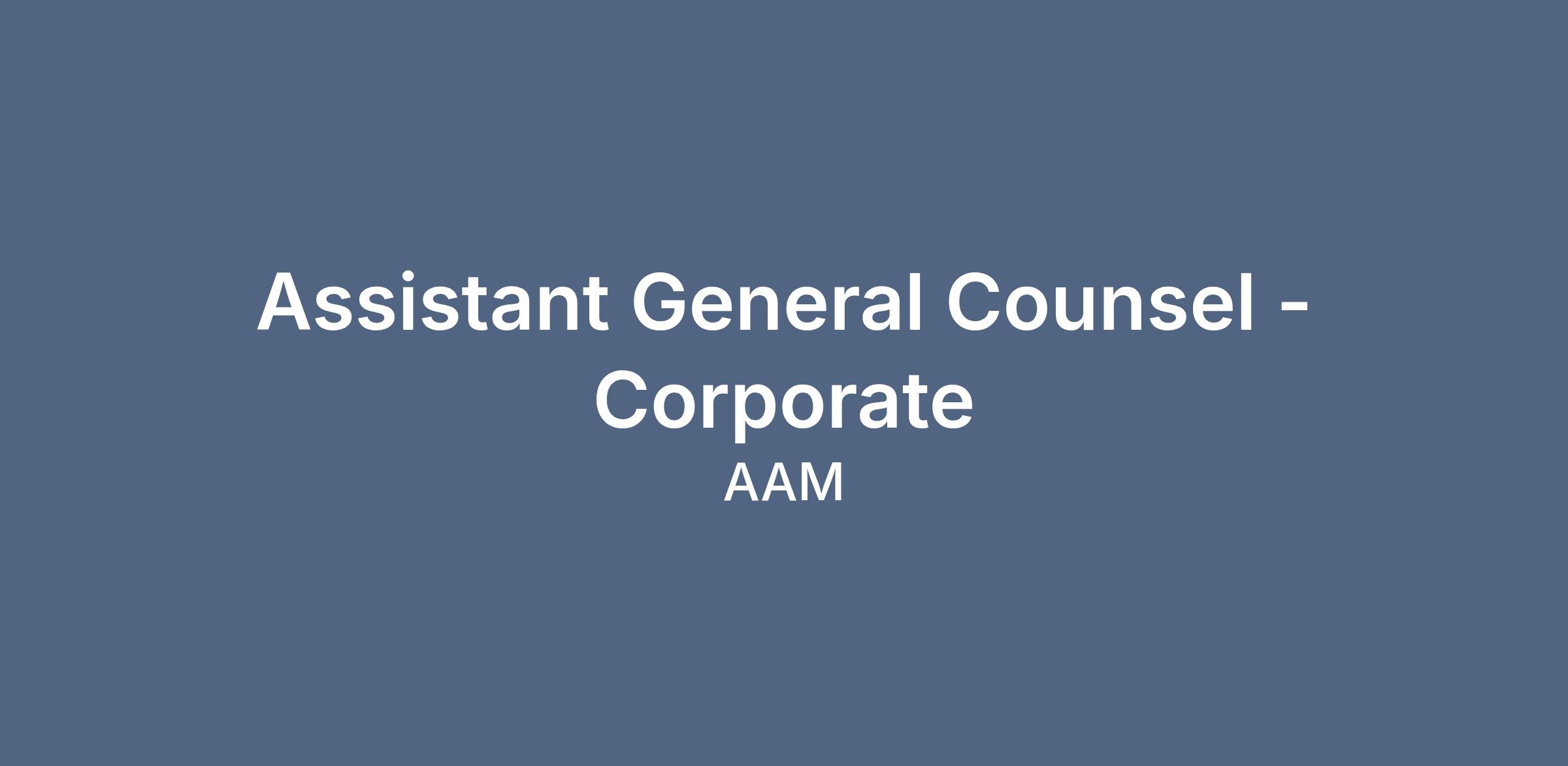 Assistant General Counsel - CorporateJob Description Summary