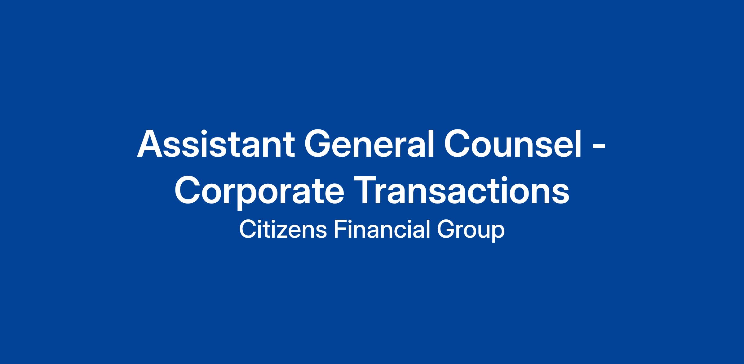 Citizens Bank is seeking a seasoned, proactive, and business‑oriented attorney to join its Corporate Transactions Legal Team. The Assistant General Counsel - Corporate Transactions provides legal advice and strategic legal guidance across Citizens and its business lines on third‑party commercial engagements, mergers and acquisitions, and other key corporate initiatives.