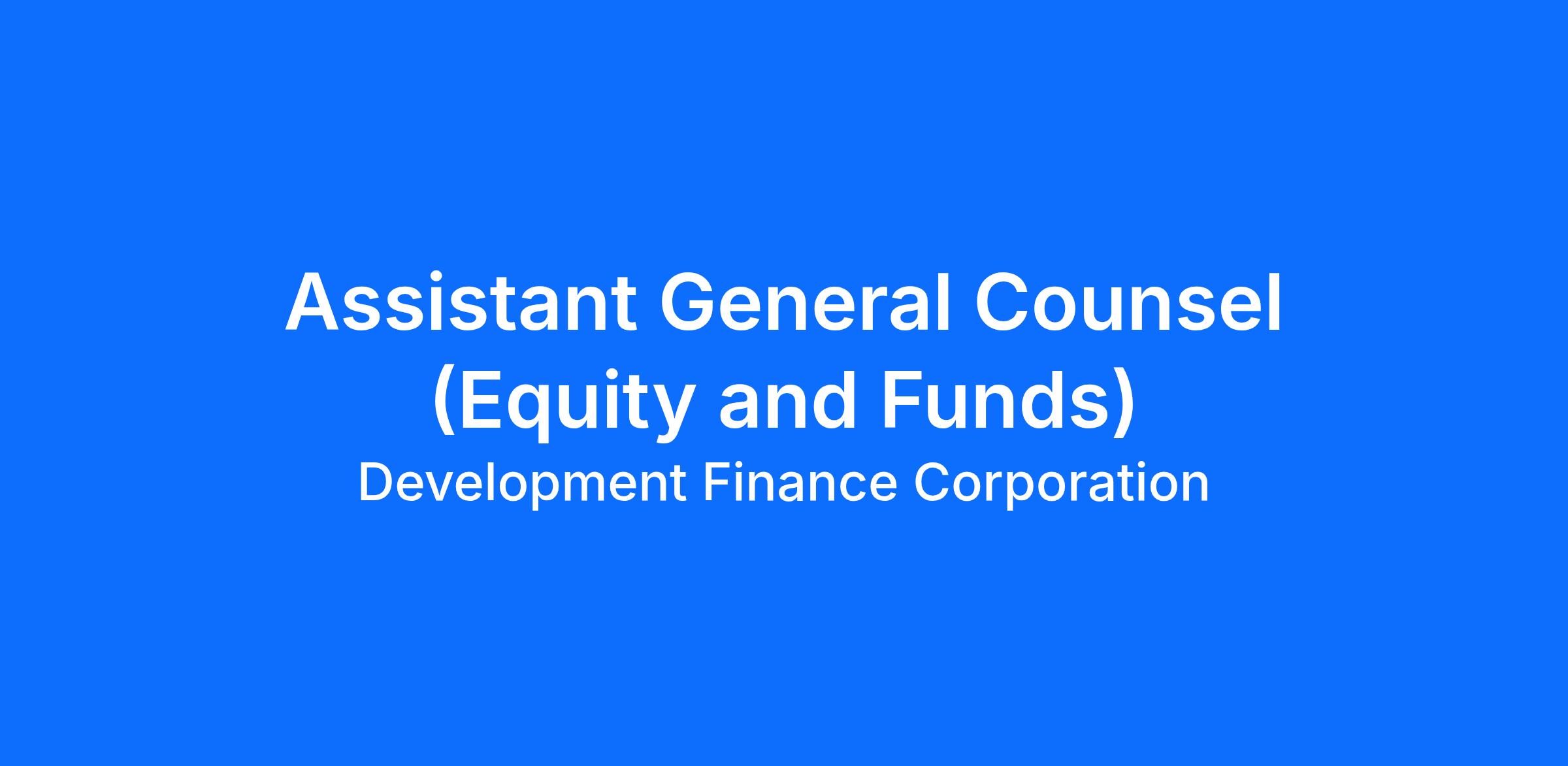 This position is located in DFC's Office of the General Counsel (OGC). The successful candidate will serve as an Assistant General Counsel and advise on the legal and policy aspects of DFC's equity investment program.