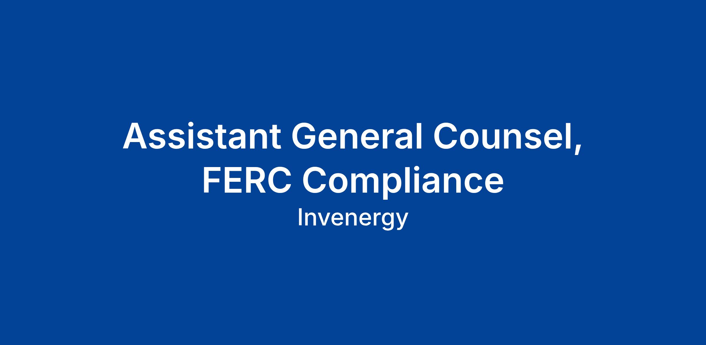 As the Assistant General Counsel, FERC Compliance, you will provide professional legal advice, counsel, support and guidance to Invenergy’s business operations, focused primarily on the Federal Energy Regulatory Commission (“FERC”) regulatory interests of the company as related to its generation and transmission portfolios across the United States. In addition, you will serve a critical function within the legal group, providing input and oversight on various strategic and legal operations initiatives.