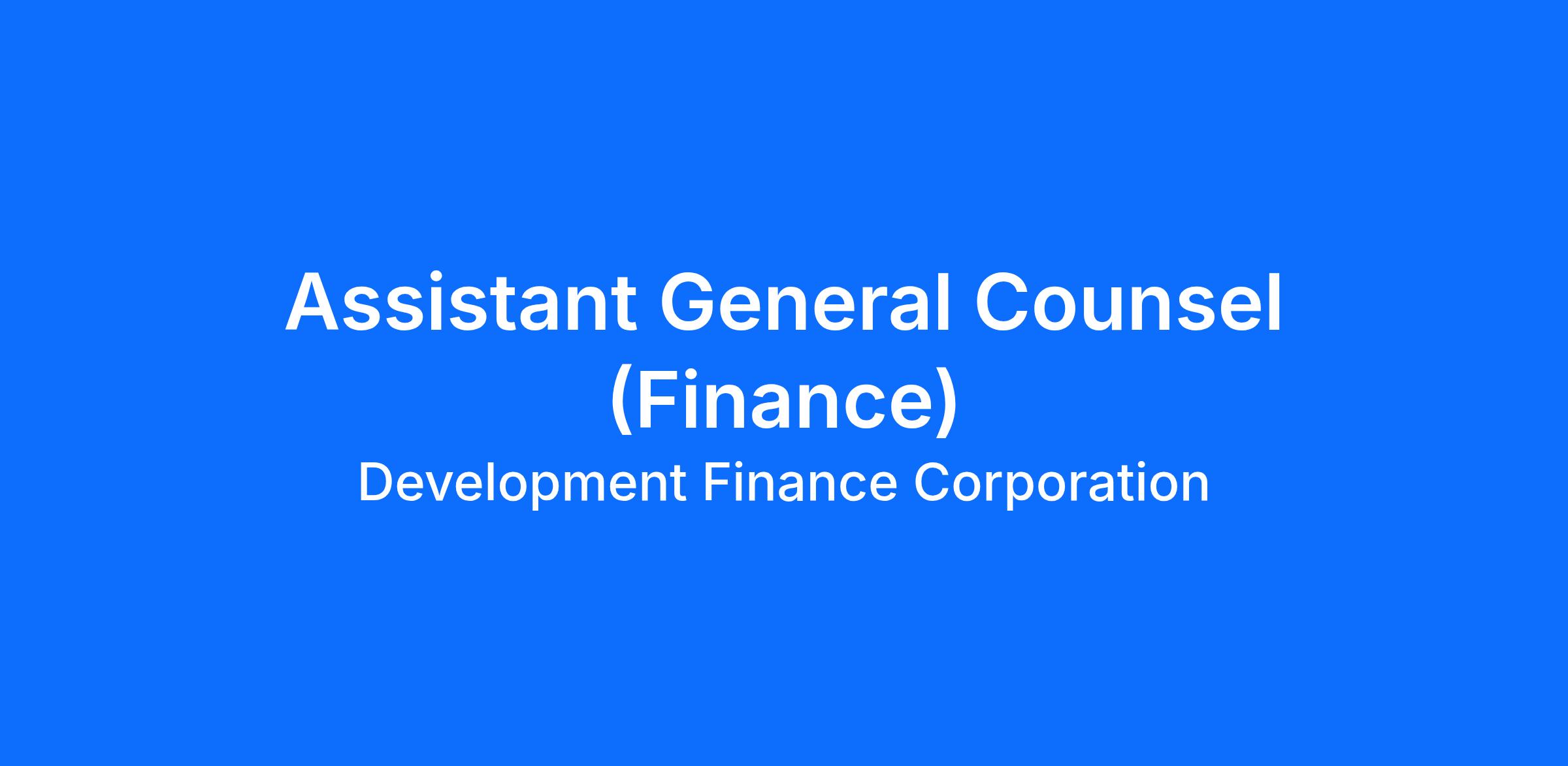 As an Assistant General Counsel (Finance) you will work with DFC's business teams to: