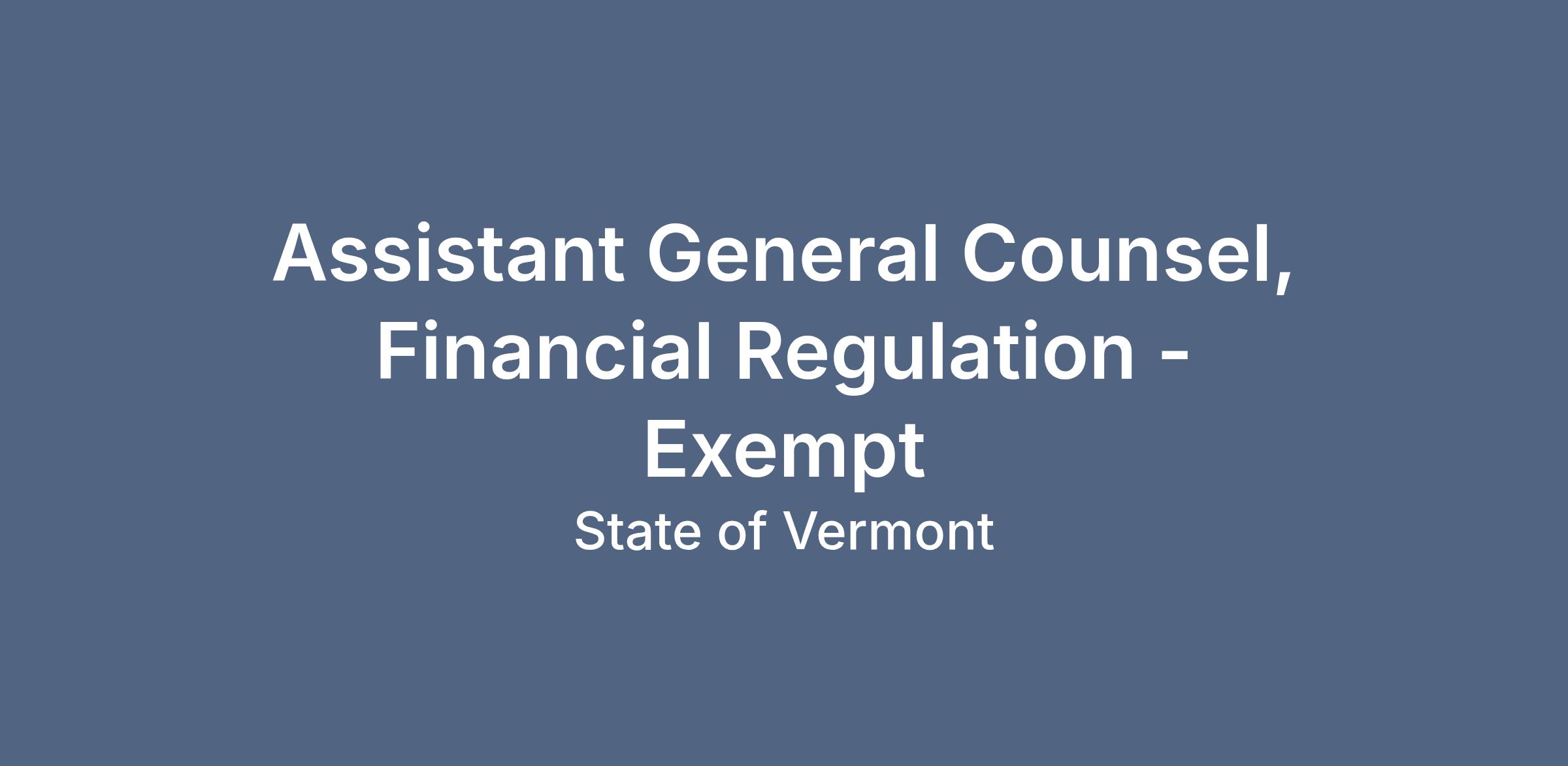 The Department of Financial Regulation, which regulates insurance, banking, captive insurance, and securities, seeks to hire an Assistant General Counsel. The Assistant General Counsel will work within the Department’s ten-member Legal Division to provide legal services to the Department. Assignments may include: