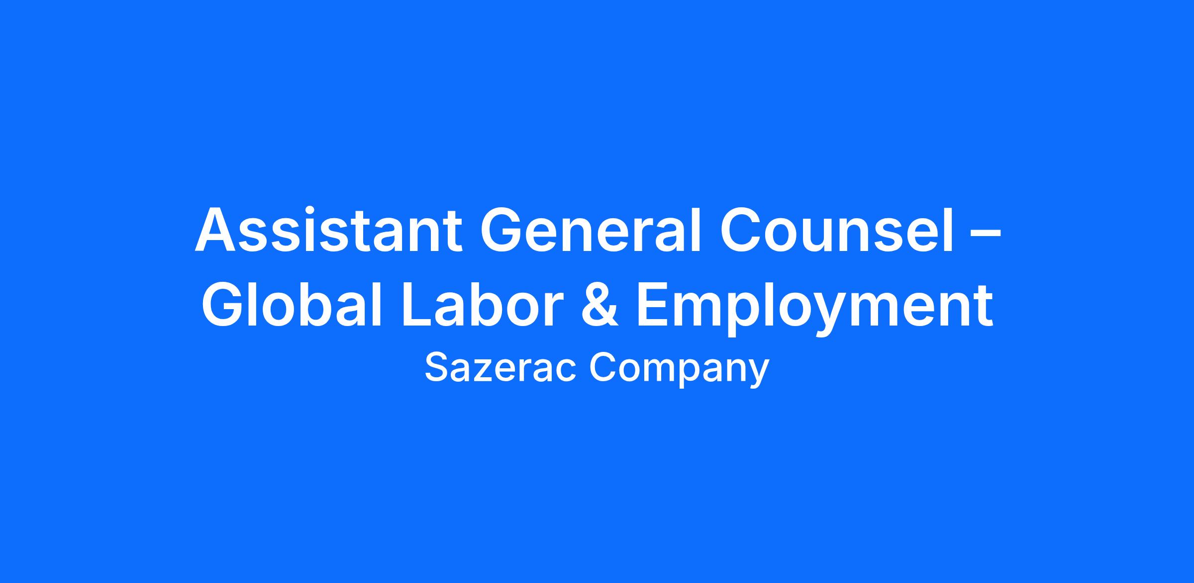 Sazerac Company is seeking an Assistant General Counsel – Global Labor & Employment to serve as the company’s senior legal advisor on employment and labor matters across our global operations. This role will partner closely with executive leadership, Human Resources, and business leaders to shape and execute the company’s people strategy while ensuring compliance with complex and evolving employment laws. The Assistant General Counsel will play a key leadership role within the Legal Department and will help design scalable legal systems, policies, and governance frameworks to support Sazerac’s continued global growth. The successful candidate will combine deep technical expertise in employment law with strong business judgment, leadership capability, and a proactive, solution-oriented mindset. This is a unique opportunity to help shape the employment legal strategy of one of the world’s fastest growing global spirits companies.