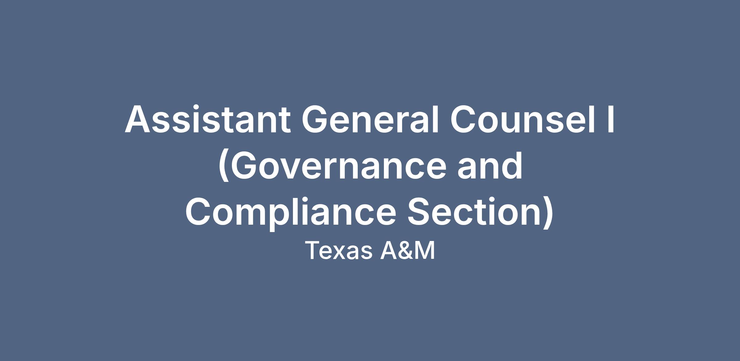 Assistant General Counsel I (Governance and Compliance Section)Agency