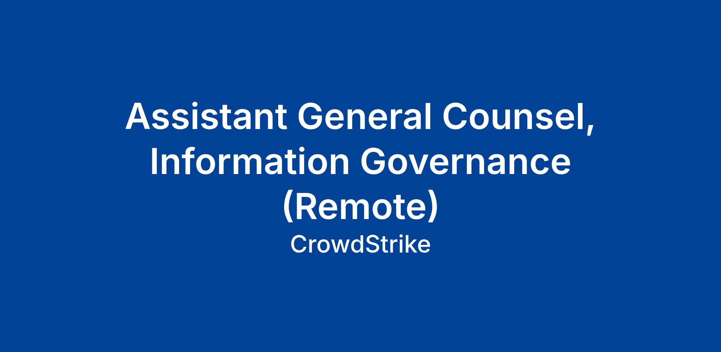 CrowdStrike is seeking an Assistant General Counsel, Information Governance based in the United States to support the company’s evolving governance needs across AI, data, and enterprise information systems. This senior role reports directly to CrowdStrike’s privacy leadership.