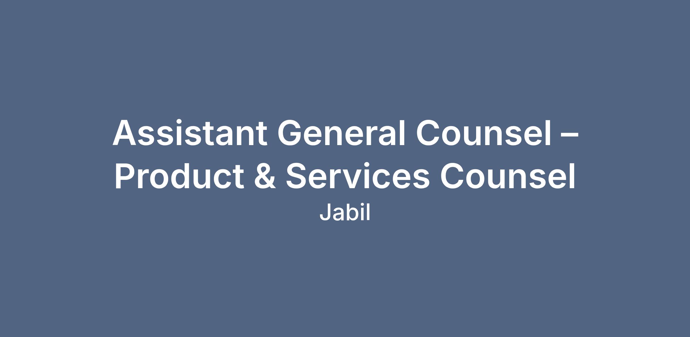 Jabil is seeking a dynamic and self-motivated attorney to join our Commercial Legal team as an Assistant General Counsel – Product & Services Counsel.