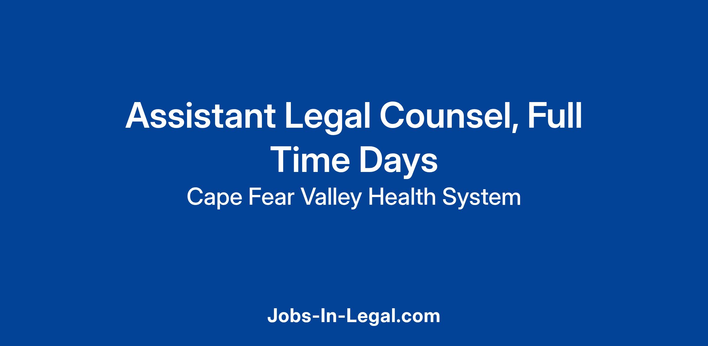 Assistant Counsel Provides legal services and counsel to the Cape Fear Valley Health System and its related entities (CFVHS) on various legal matters including interpretation and application of laws and regulations, as well as contractual relations and liability matters.The following is a summary of the major essential functions of this job. The incumbent may perform other duties, both major and minor, that are not mentioned below. In addition, specific functions may change from time to time: