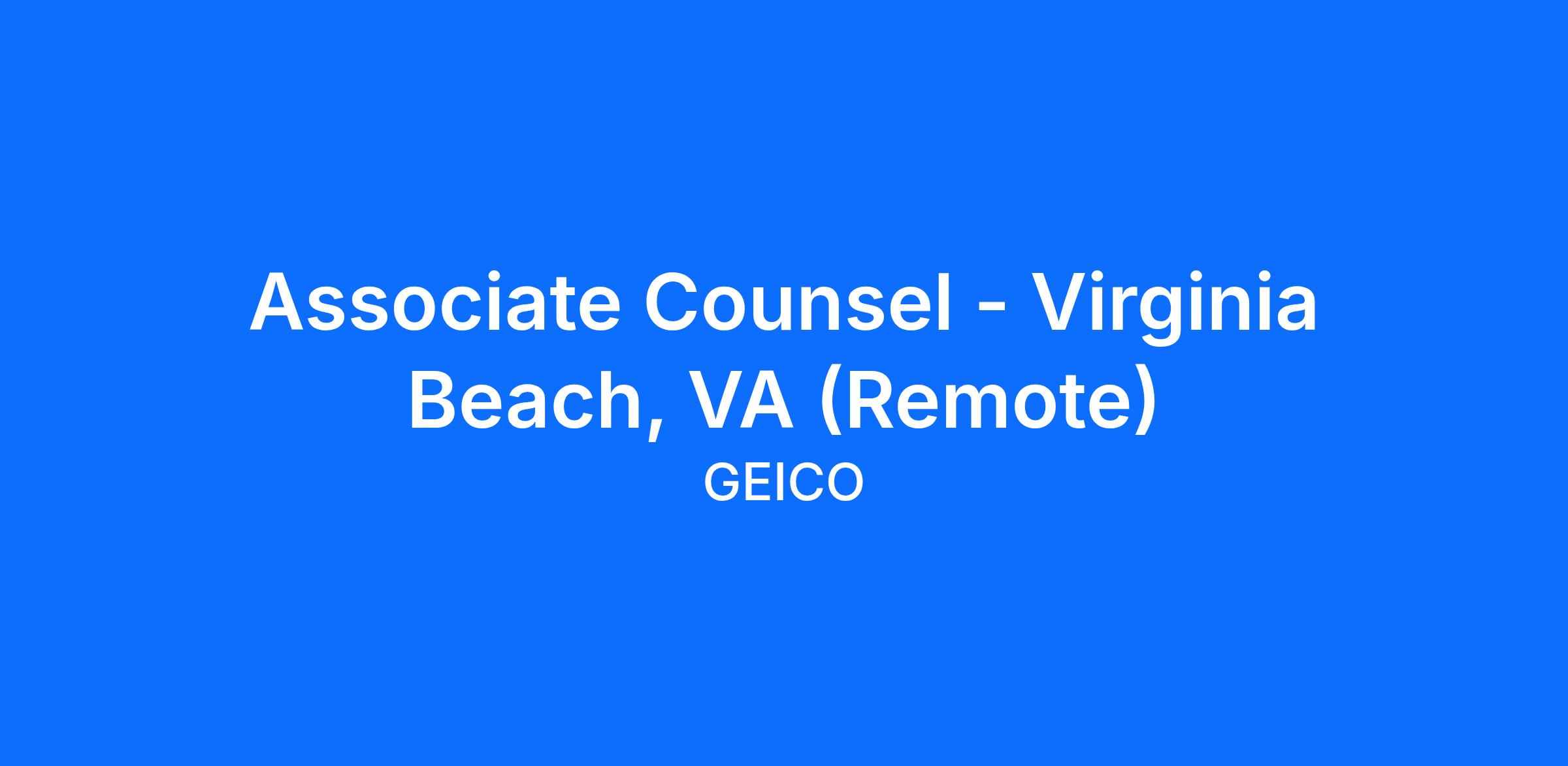 GEICO is looking to hire an Associate Counsel to defend lawsuits filed in Virginia courts and other first party insurance defense. The position is with GEICO Staff Counsel located in Virginia Beach, Virginia.