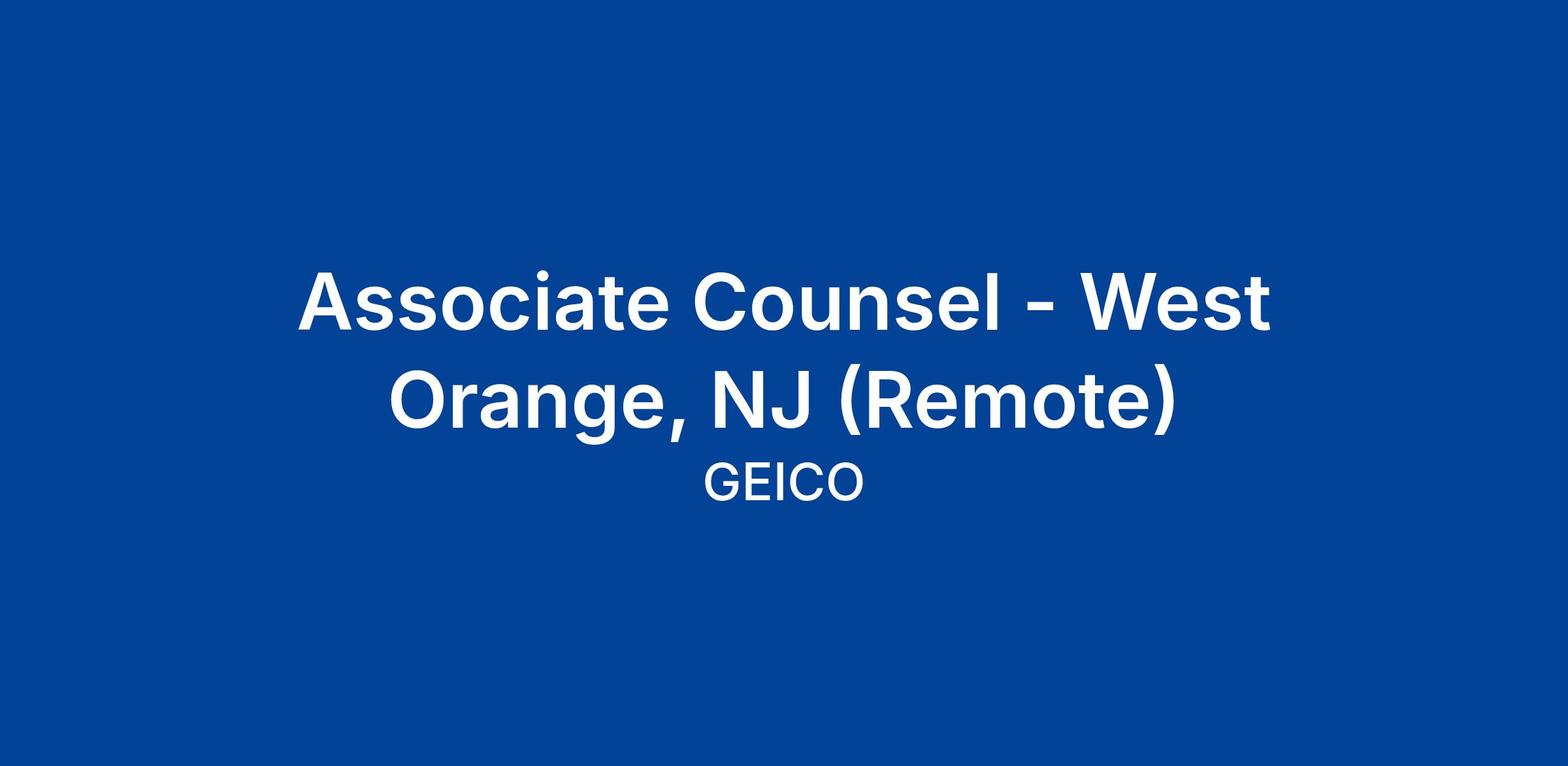 GEICO is looking to hire an Associate Counsel to defend lawsuits filed in New Jersey courts and other first party insurance defense. The position is with GEICO Staff Counsel located in West Orange, NJ.