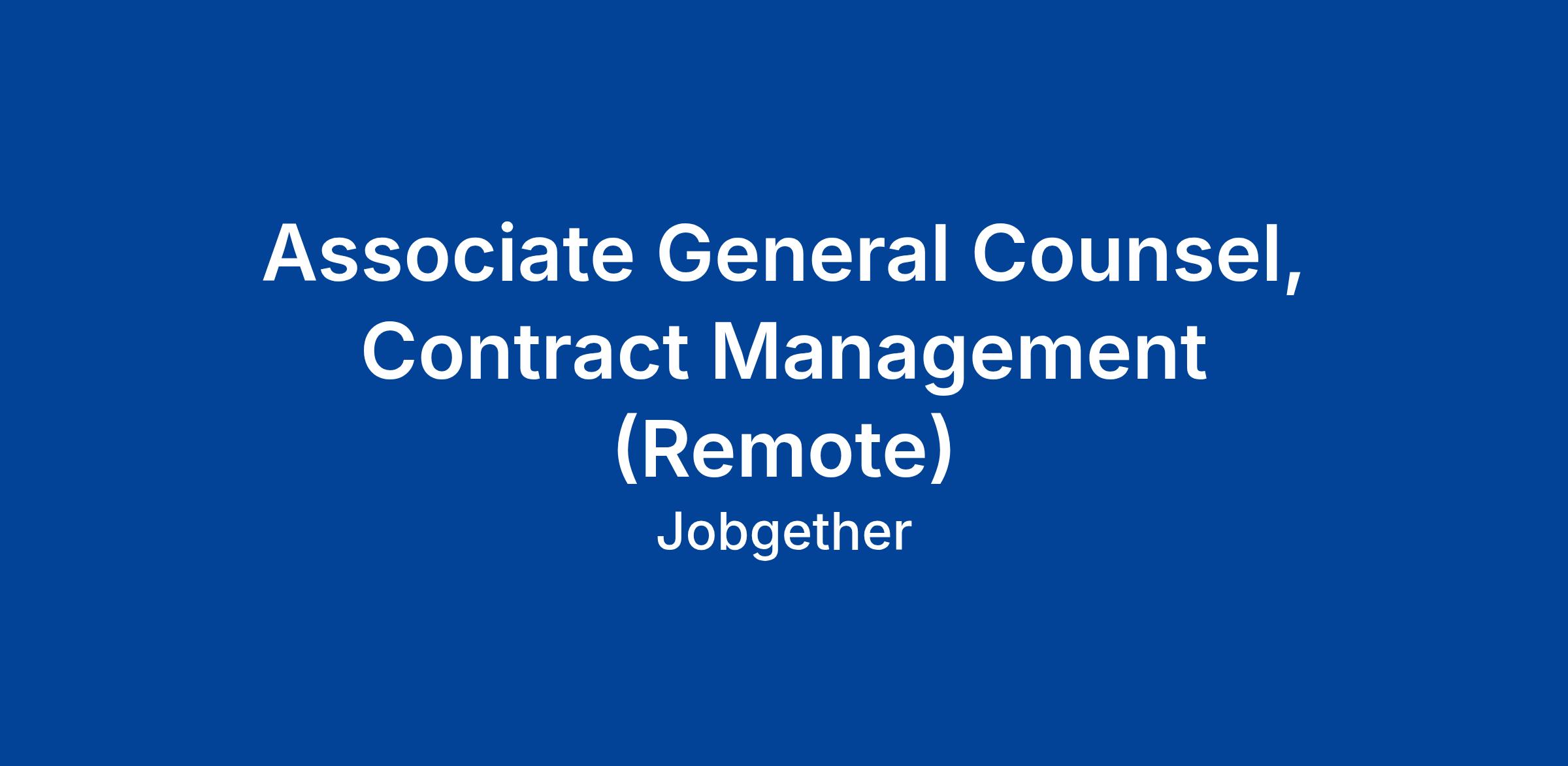 Associate General Counsel, Contract Management (Remote)