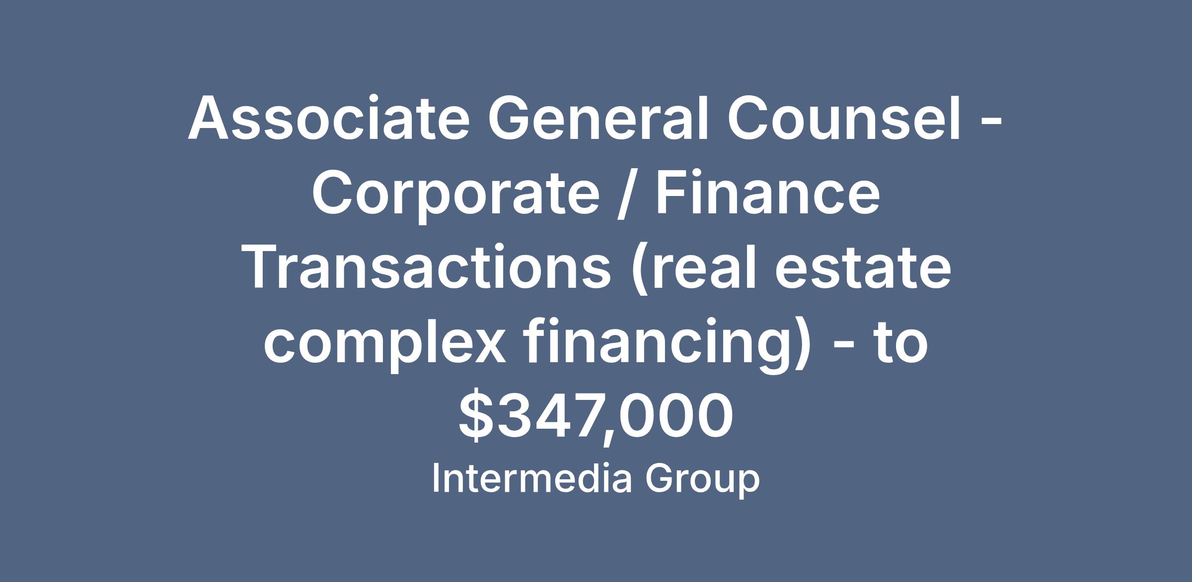 OPEN JOB: Associate General Counsel - Corporate / Finance Transactions (real estate complex financing) LOCATION: McLean, Virginia