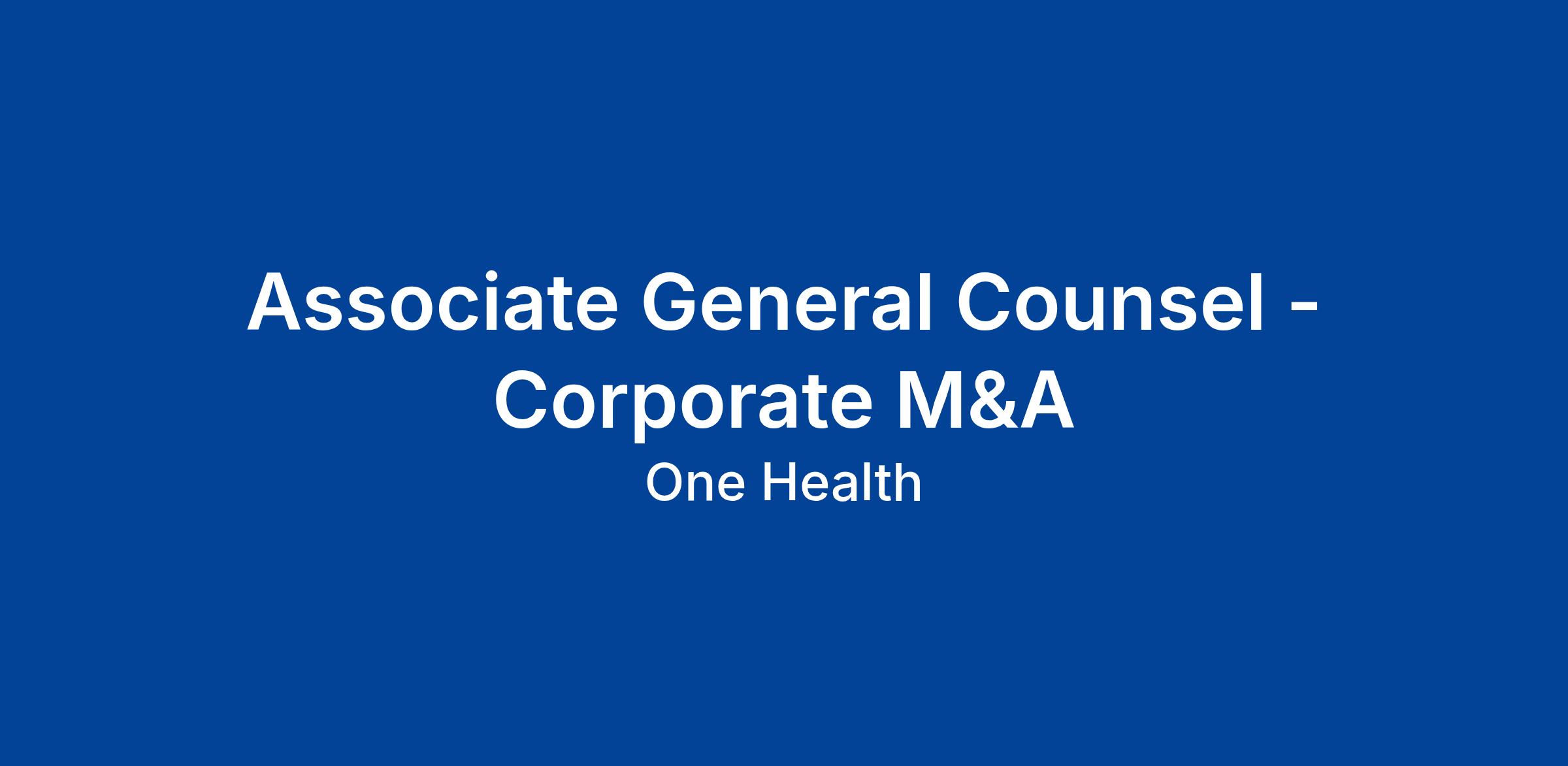 Job Summary One Health is seeking an accomplished Associate General Counsel to become a key member of our in- house legal team. This position is ideal for an experienced corporate attorney with proven expertise in structuring, negotiating, and executing sophisticated M&A transactions within the healthcare sector.