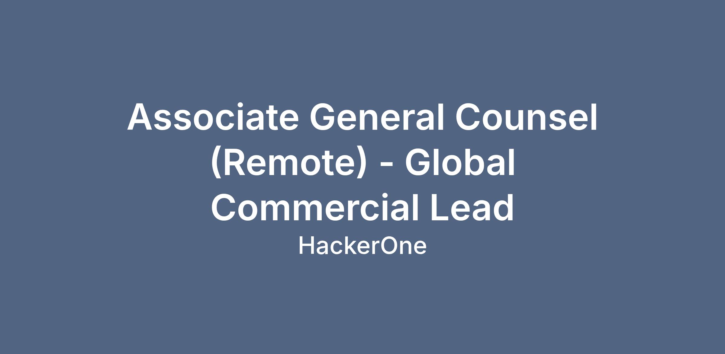 HackerOne is dedicated to fostering a strong and inclusive culture. HackerOne is Customer Obsessed and prioritizes customer outcomes in our decisions and actions. We Default to Disclosure by operating with transparency and integrity, ensuring trust and accountability. Employees, researchers, customers, and partners Win Together by fostering empowerment, inclusion, respect, and accountability.Associate General Counsel - Global Commercial Lead