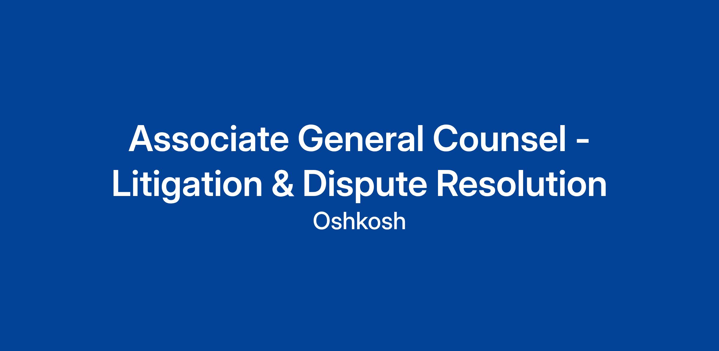 The Associate General Counsel – Litigation & Dispute Resolution will lead Oshkosh Corporation’s global litigation, claims and dispute management strategy, with the exception of labor and employment matters. Reporting to the Vice President, Deputy General Counsel and Assistant Secretary, the Associate General Counsel – Litigation & Dispute Resolution will oversee product and general liability claims, commercial disputes, intellectual property disputes, government investigations and regulatory enforcement matters across multiple business segments and geographies.