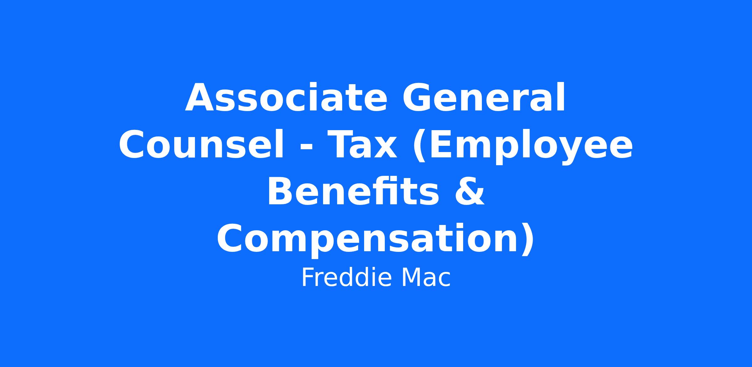 The Governance, Disclosure and Benefits department in the Freddie Mac Legal Division is seeking a proactive attorney with superior tax, analytical and communication skills to join its legal staff as an Associate General Counsel.