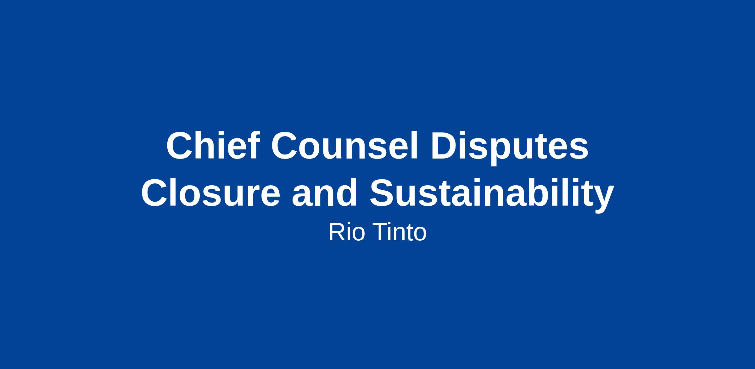We are seeking a Chief Counsel, Disputes, Closure & Sustainability to provide enterprise-level legal leadership across Rio Tinto’s global disputes portfolio and its Closure and Sustainability / Community & Social Performance (CSP) businesses.