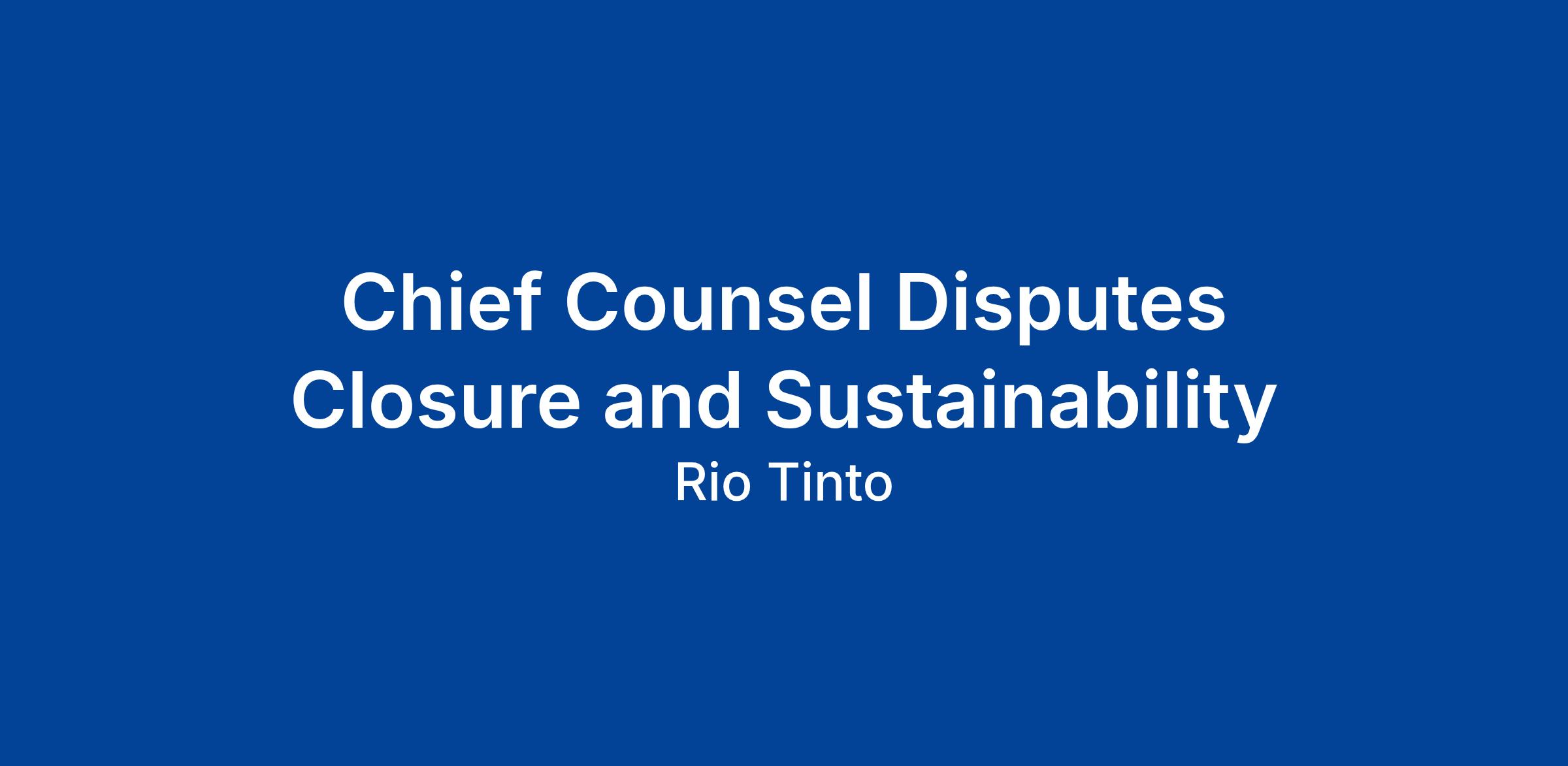 We are seeking a Chief Counsel, Disputes, Closure & Sustainability to provide enterprise-level legal leadership across Rio Tinto’s global disputes portfolio and its Closure and Sustainability / Community & Social Performance (CSP) businesses.