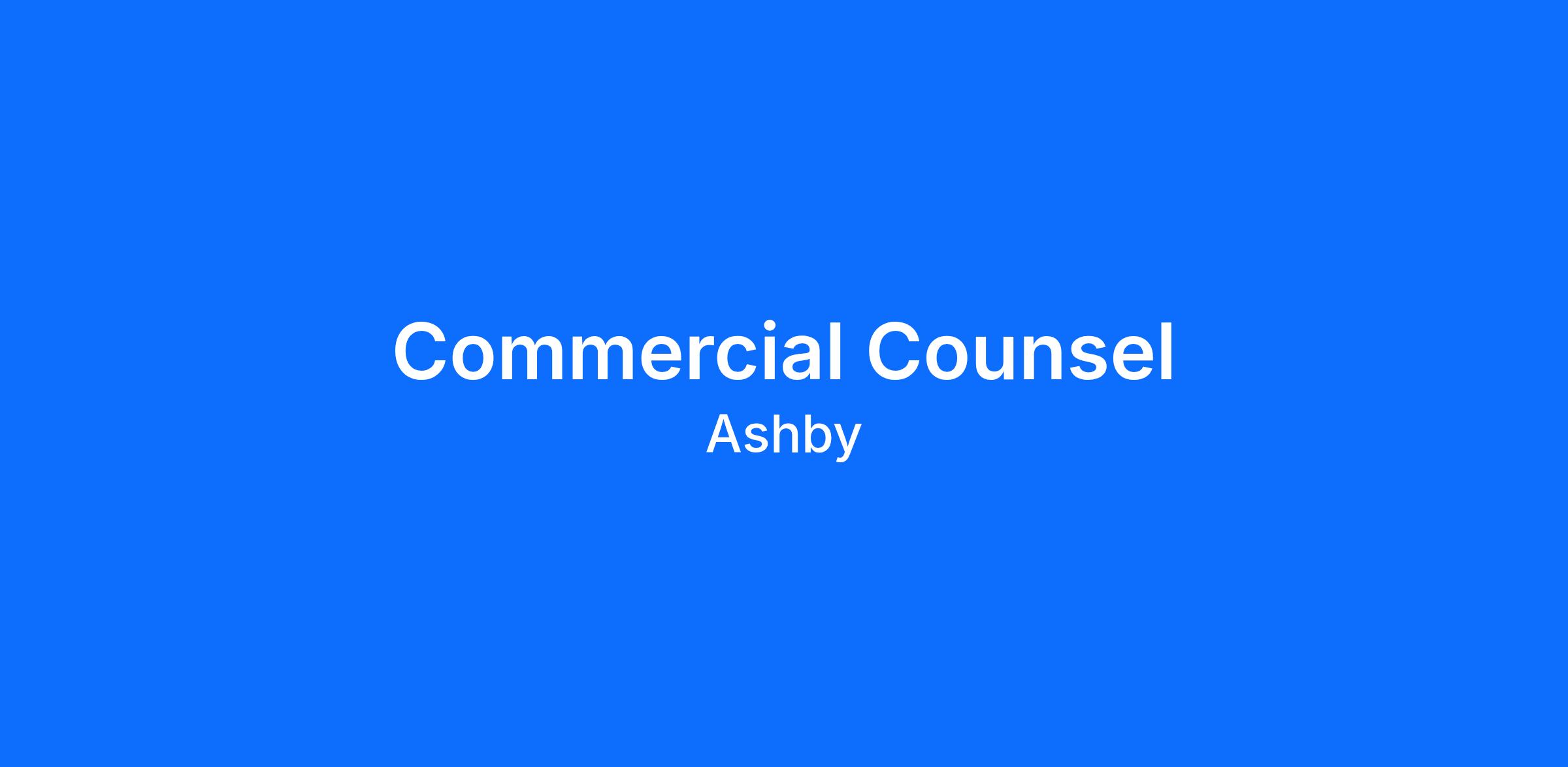We are hiring for a Commercial Counsel to support proactive, scalable legal partnership with Ashbyâs go-to-market teams. This is a hands-on, execution-focused role at the center of deal flow. You will be in commercial contracts every day, partnering closely with Sales to help close deals and directly drive revenue. You should also have demonstrated experience in identifying and implementing new legal technologies that allow us to build scalable commercial processes, unblocking customers and enabling the business to grow efficiently