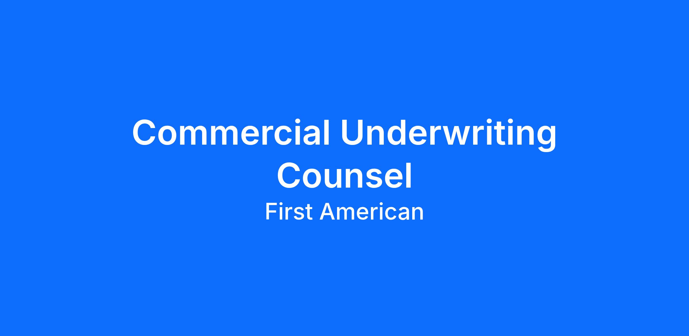 Enable you to apply your passion for law and risk analysis to real estate transactions. If you excel in collaborating with others to assess possibilities and discover solutions, it may be time to combine your analytical rigor with a premier brand in the commercial real estate space. First American is looking to add a Commercial Underwriting Counsel to our growing team. This position plays a key role in transforming the commercial real estate experience by empowering our employees and customers to deliver next-generation solutions and results.
