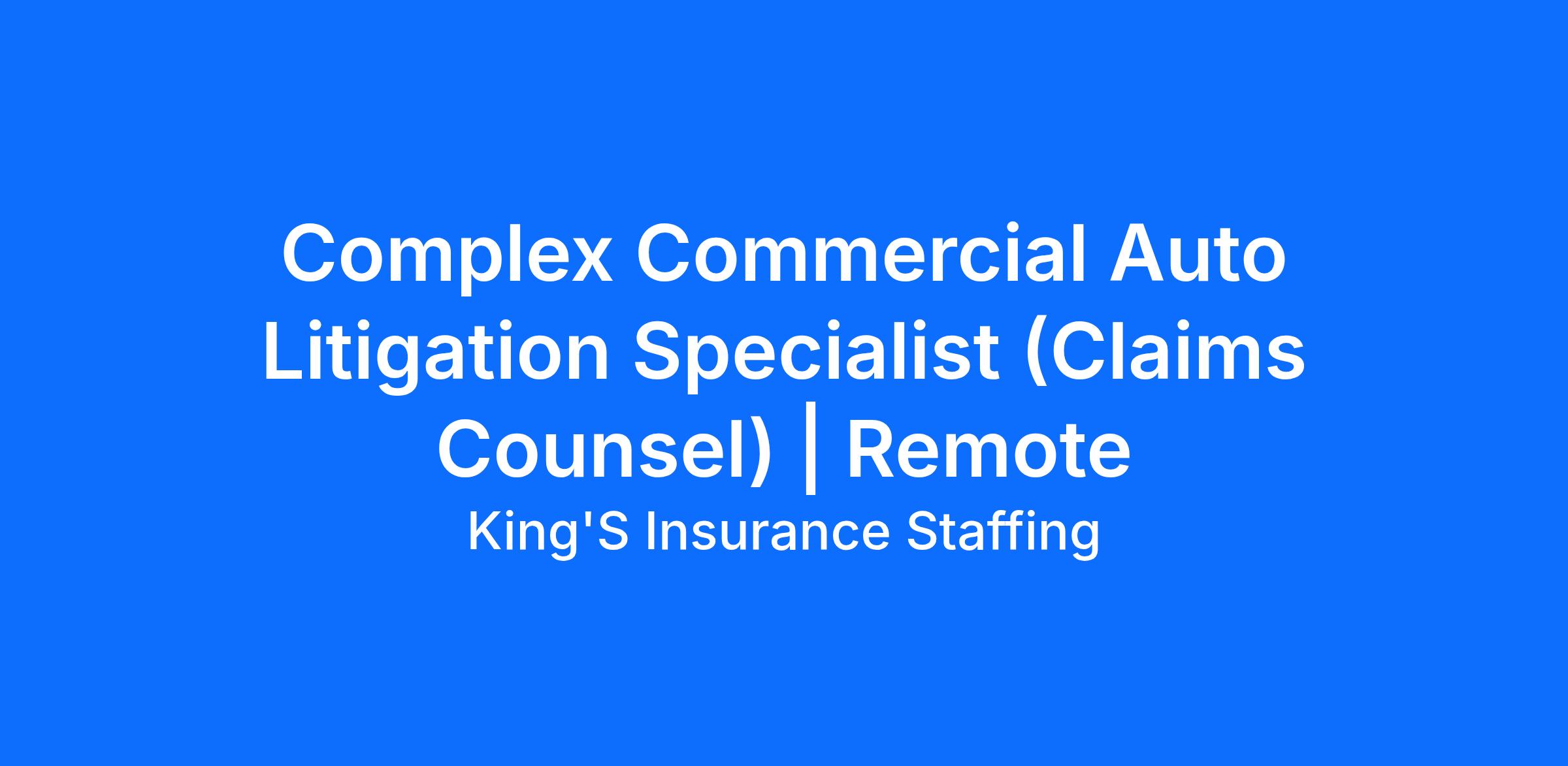 7+ years of Commercial Auto and Litigation claims handling experience, with a strong focus on complex/high exposure claims.