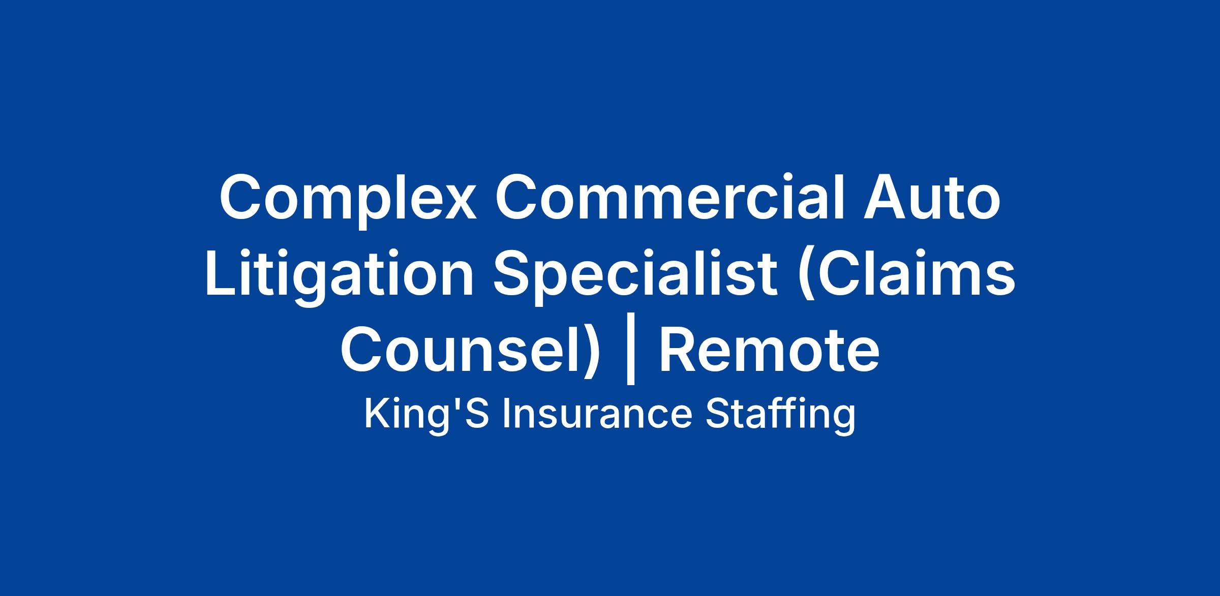 7+ years of Commercial Auto and Litigation claims handling experience, with a strong focus on complex/high exposure claims.