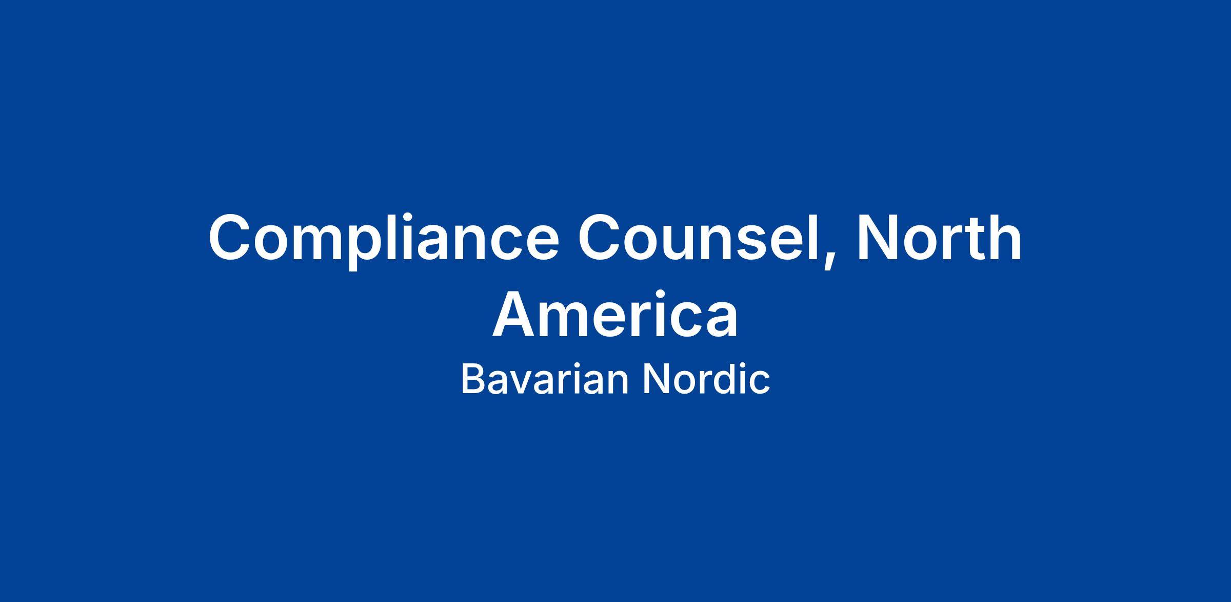 Job Title: Compliance Counsel, North America