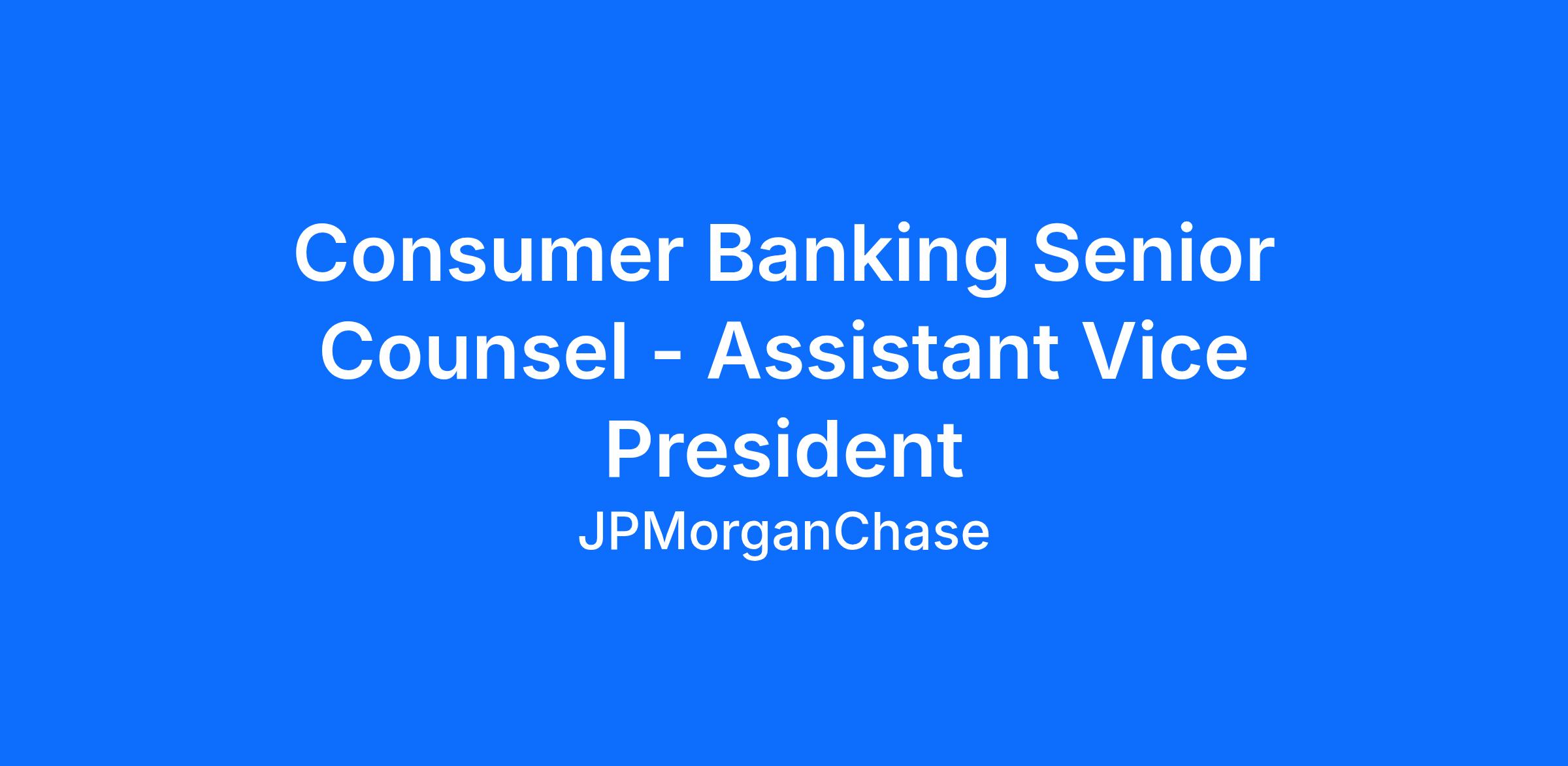 As an Assistant Vice President and Senior Counsel within the Consumer Banking Legal Team, you will support the Consumer Banking line of business in areas that require strategic legal leadership that keeps pace with business developments. When you join JPMorgan Chase’s Legal Department, you become part of a dynamic group of lawyers that provides a broad array of legal support in areas that have direct impact on consumers. You will focus on your two clients: the firm and our end-consumer. You will utilize your strong analytical and issue-spotting skills in a broad range of legal and regulatory areas including, but not limited to: the National Bank Act, Regulations DD and E, UDAAP, and laws and regulations that govern interactions with government entities.