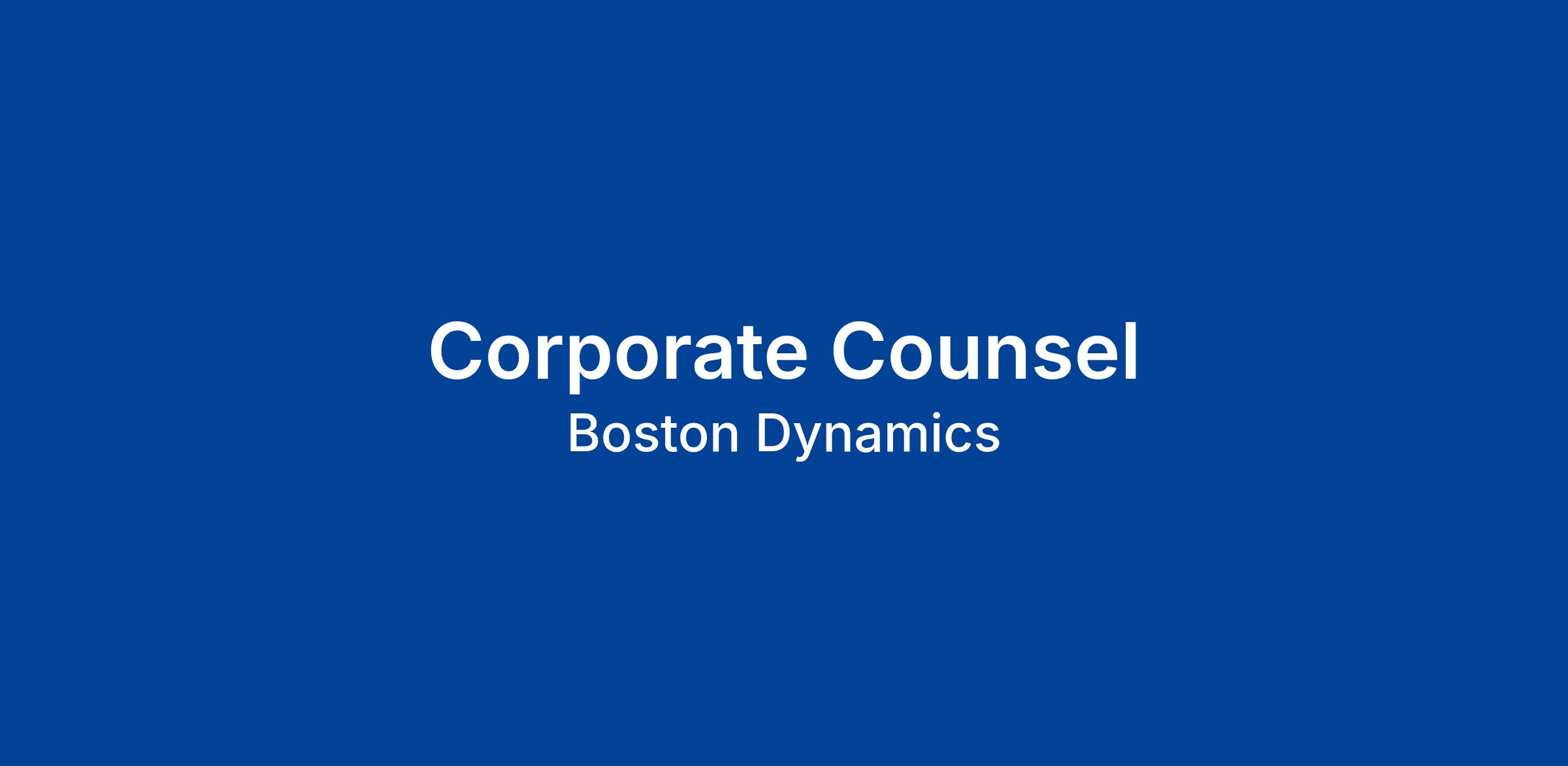 Boston Dynamics is looking for an experienced Corporate Counsel to assist with our Corporate, Governance, and Investor Management functions. As part of a highly dynamic team, this individual will be responsible for working with the Company’s General Counsel and Assistant General Counsel in creating and managing Board and Shareholder materials, Board and Shareholder meetings, managing the legal books and records for the Company’s international subsidiaries, interacting directly with our investors, and assisting as needed with all aspects of the Company’s corporate and commercial needs. This role will report to our Assistant General Counsel, and will be based in our Waltham, MA world headquarters.
