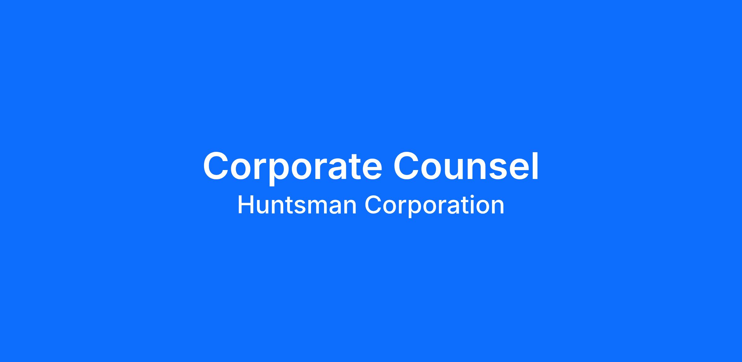Huntsman is seeking a Corporate Counsel to support the Global Legal Department located in The Woodlands, Texas. This position will report to the Deputy General Counsel.