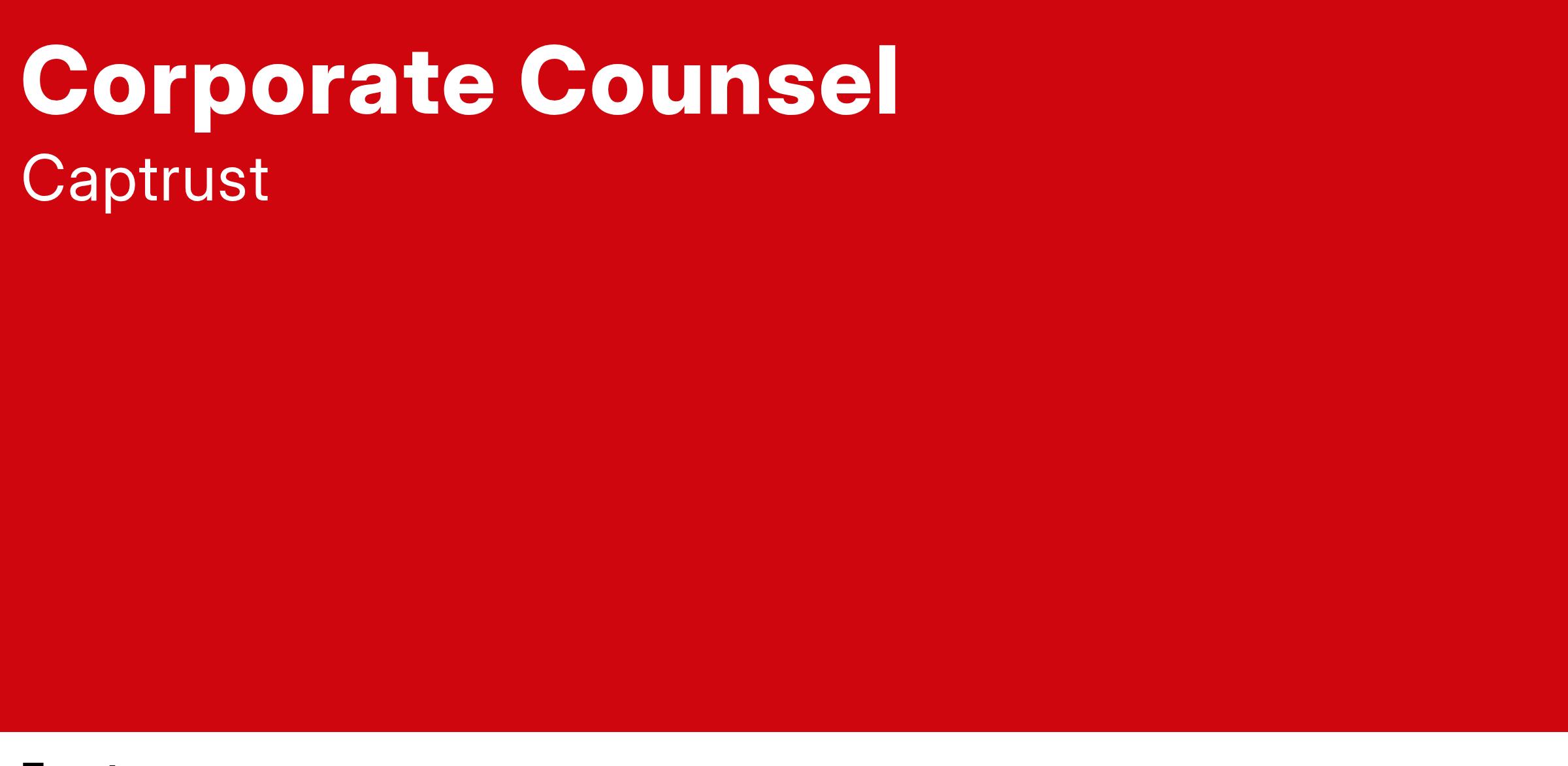 CAPTRUST is seeking a Corporate Counsel with commercial contracting experience to join our internal legal team. As counsel, you will provide practical legal advice, primarily to the institutional advisory practice, while mitigating legal risks for the company. The role will include responsibility to coordinate matters with external counsel and internal stakeholders. Our ideal candidate is comfortable working with all levels of management to gain an in-depth understanding of our strategy and services. The candidate will maintain the highest professional and ethical standards, have excellent time management, organization, and decision-making abilities, be able to prioritize projects and deadlines, be collaborative, and accountable while performing in a fast-paced and evolving environment.