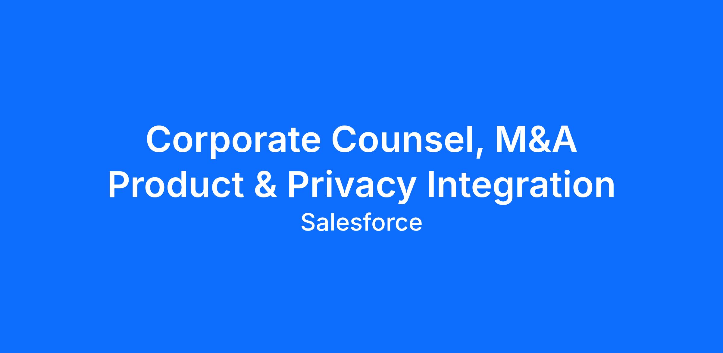 We are looking for a proactive, tech-savvy attorney currently within Salesforce to join the M&A Integration Legal team. This role sits at the intersection of product innovation, global privacy, and corporate development and will be responsible for the legal connective tissue that brings acquired technologies into the Salesforce ecosystem.