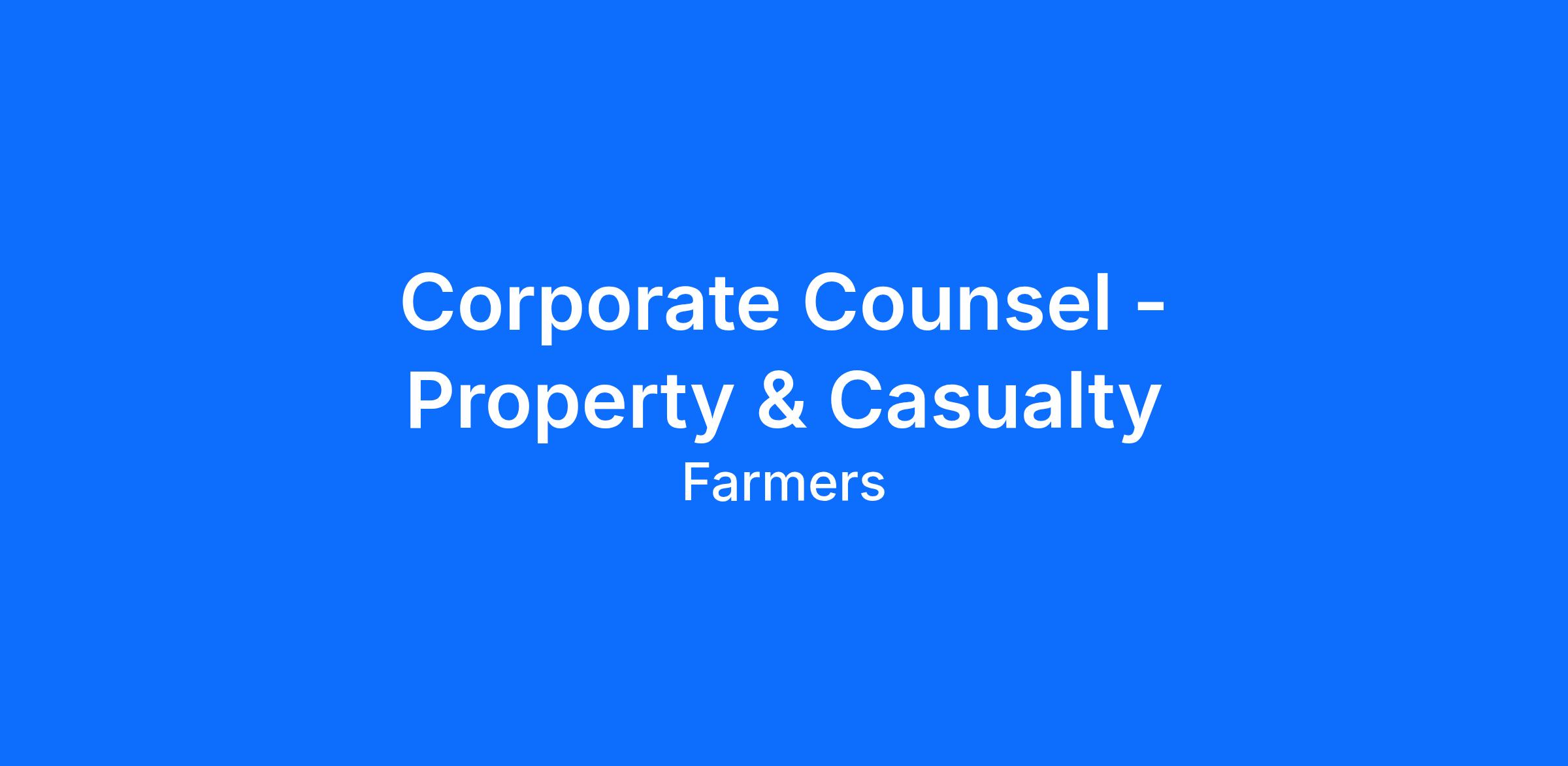This position is to be a member of the Property and Casualty Legal Group, who provide advice and counsel throughout the Farmers organization in the areas of product development, policy forms, underwriting, rating, regulatory, and general business advice. California experience strongly preferred but not required. We are open to a Corporate Counsel or Senior Corporate Counsel based on experience.