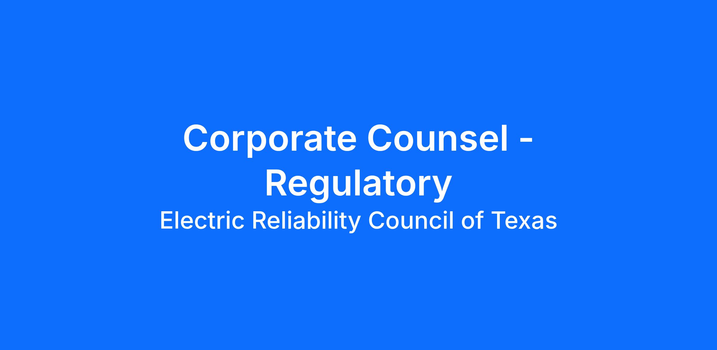 As the independent system operator (ISO) for the power system that serves the majority of Texas, ERCOT is responsible for operating and planning the ERCOT transmission grid and administering the ERCOT wholesale power market, among other critical functions. The ERCOT Legal Department is seeking an experienced attorney to join its team at the Corporate Counsel or Senior Corporate Counsel level. The ideal candidate will have relevant regulatory and industry experience, excellent written and oral communication skills, exceptional attention to detail, and a keen interest in supporting ERCOT in its critical roles.