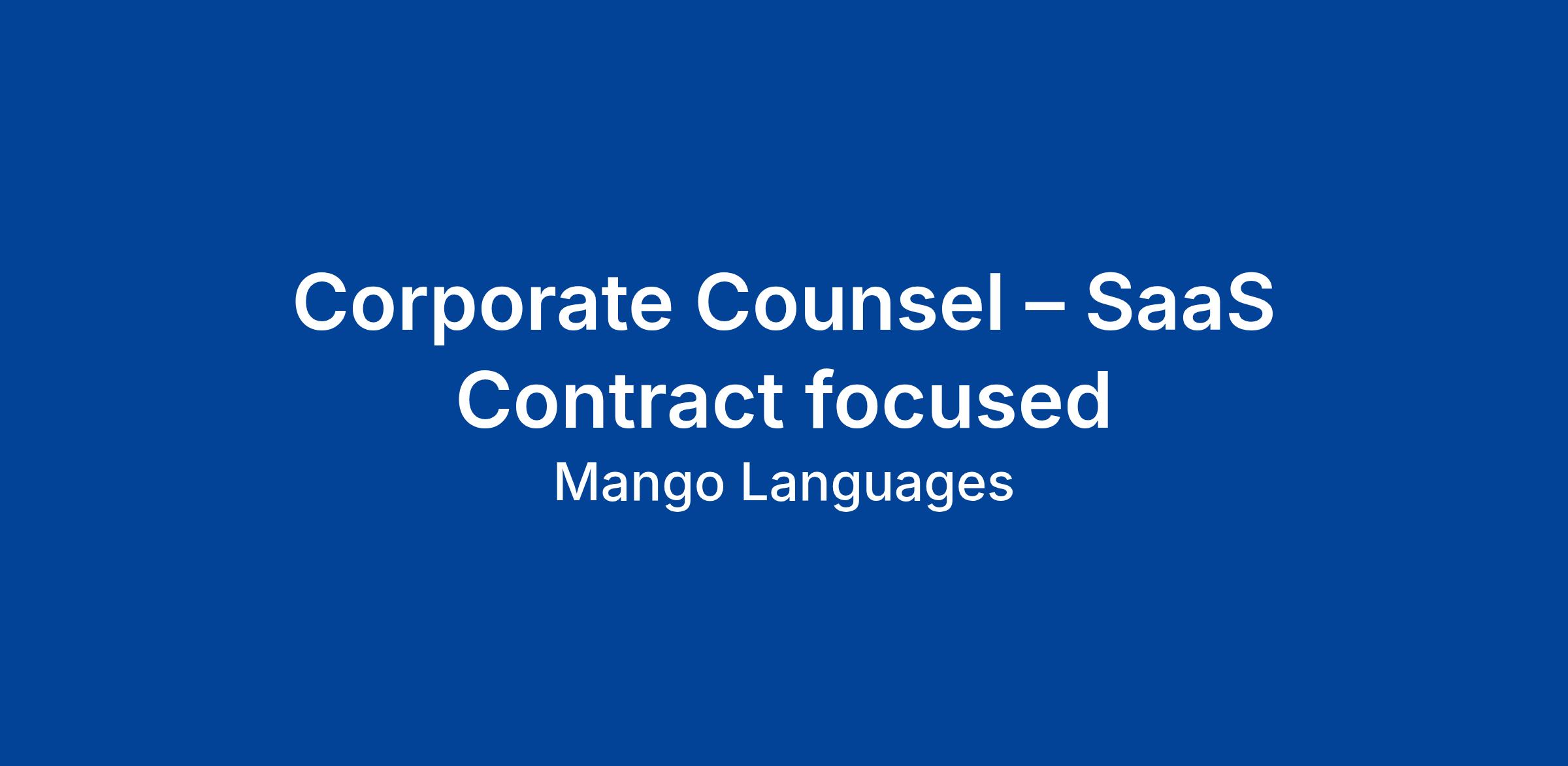 Mango Languages is hiring a Corporate Counsel with deep experience in SaaS and commercial contracts. In this role, you’ll review and negotiate a high volume of sales agreements, vendor contracts, and RFPs. You’ll also support internal legal needs across departments, including HR, Operations, and compliance.