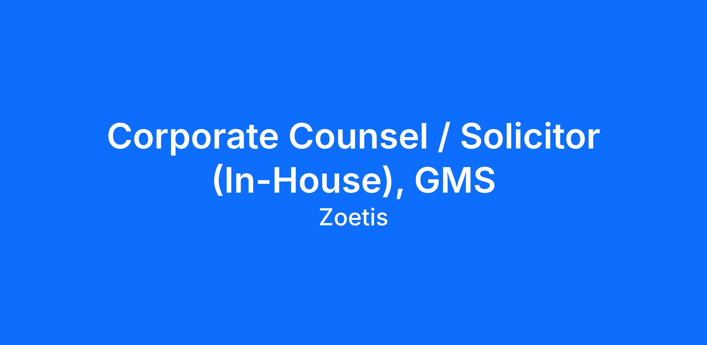Zoetis is seeking an experienced in-house Legal Counsel / Solicitor to provide legal support to our Global Manufacturing and Supply (GMS) organization. The ideal candidate will have extensive in-house experience structuring, drafting, and negotiating complex services, manufacturing, and strategic partner transactions.