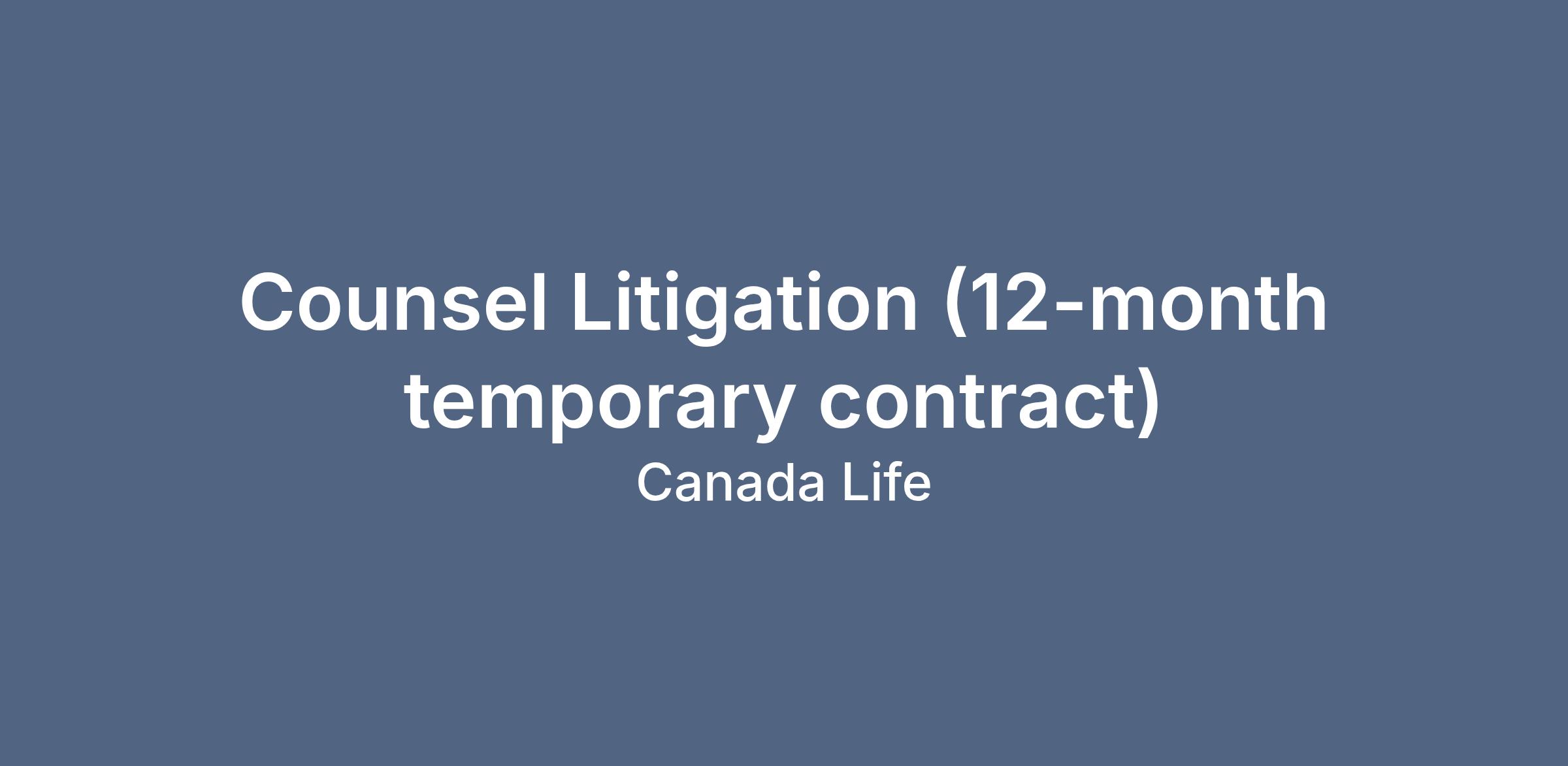 The Canada Life Assurance Company has a temporary opportunity for Litigation Counsel to join our litigation team on a contract basis, in one of our London, Toronto, Winnipeg or Montreal offices. This is a great contract opportunity for an experienced junior litigator to practice with one of Canada’s Top 100 Employers. In this contract role you will be a member of a hard-working legal team that provides practical and timely legal representation and advice to our Canadian Business units on legal disputes and other legal issues.