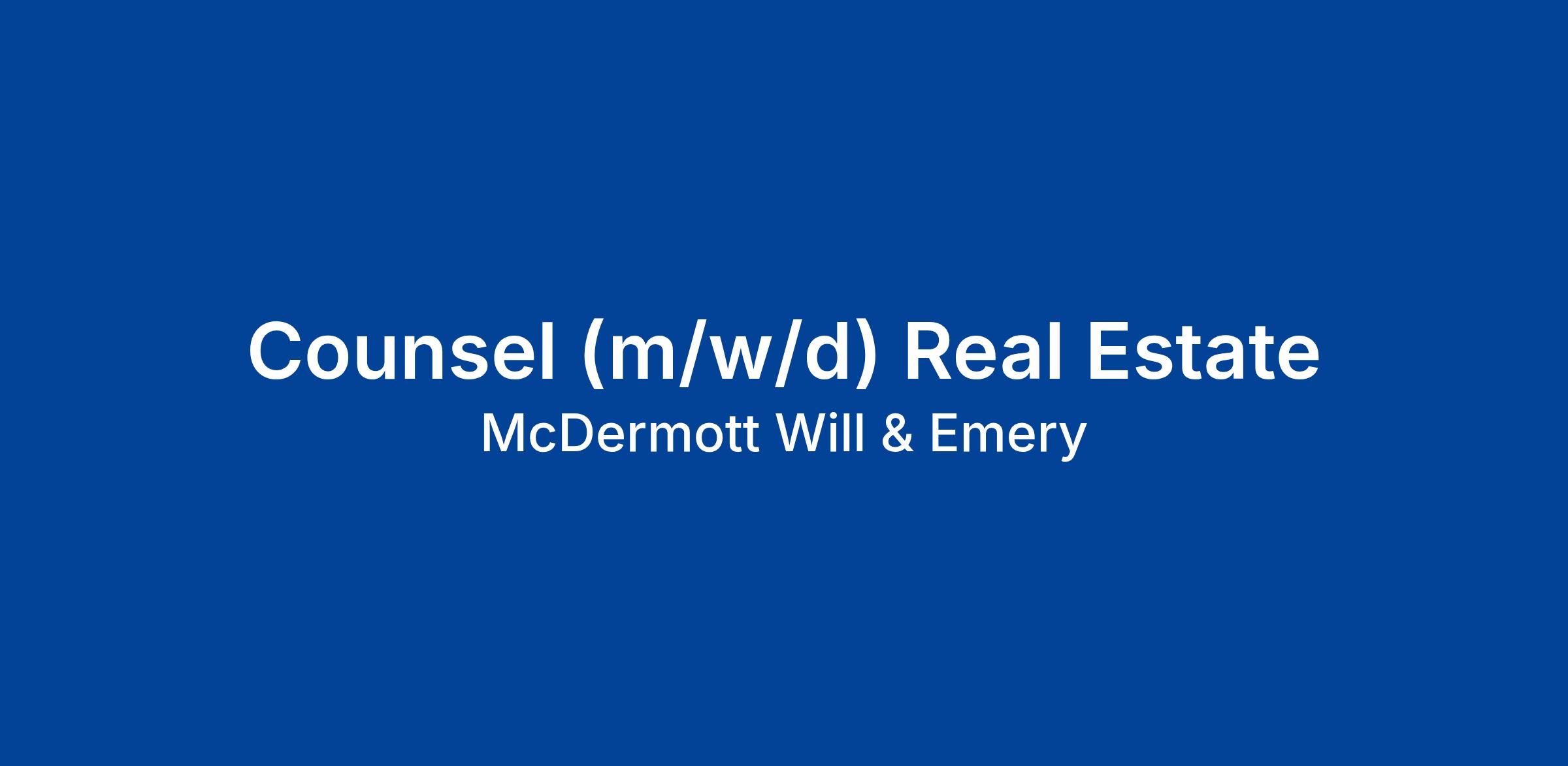 Zur Verstärkung unseres Teams in Frankfurt am Main suchen wir einen Counsel (m/w/d) mit Berufserfahrung für den Bereich Real Estate.