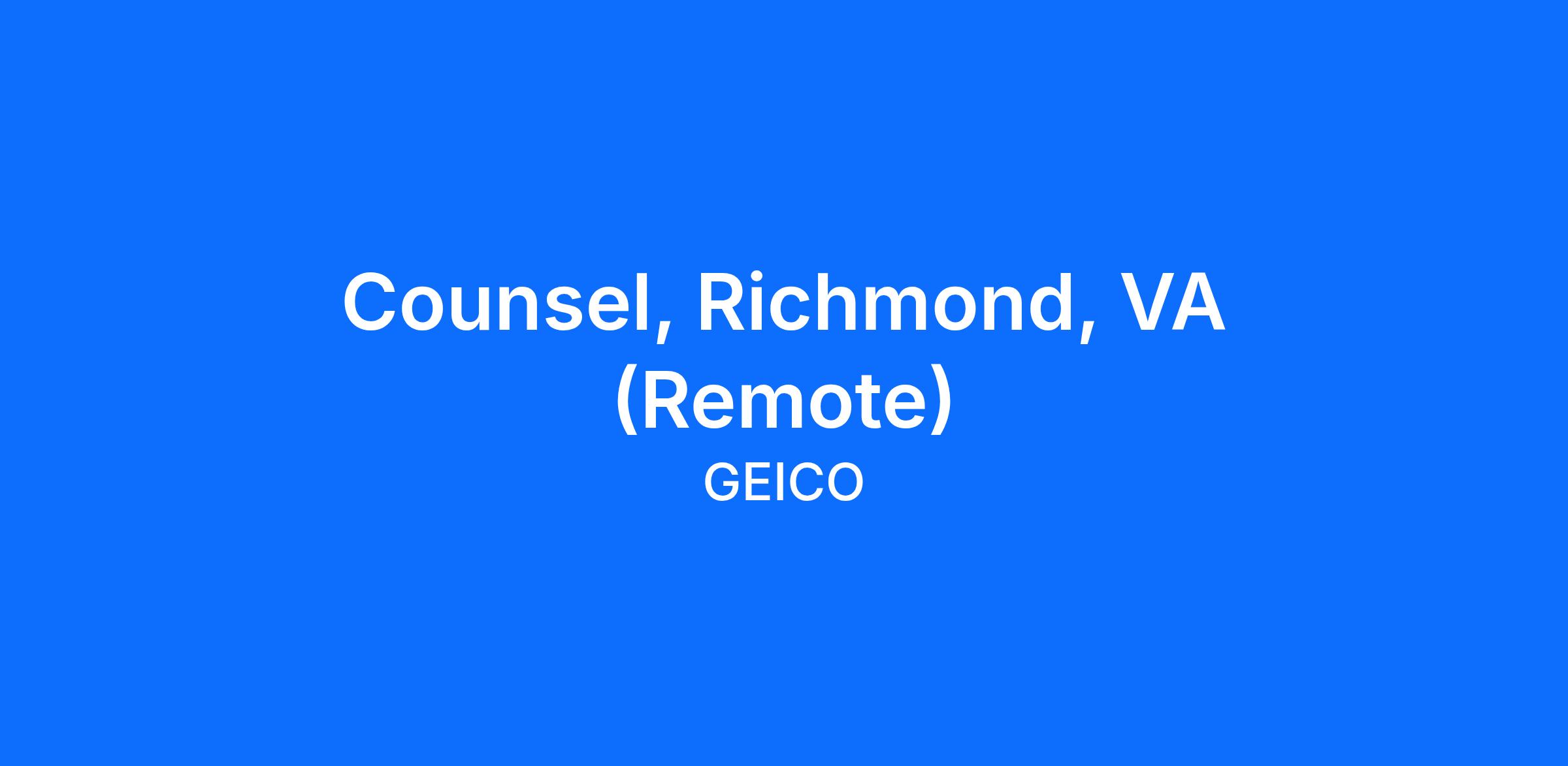 GEICO is looking to hire a Counsel to defend lawsuits filed in Virginia courts and other first party insurance defense. The position is with GEICO Staff Counsel located in Richmond, VA.