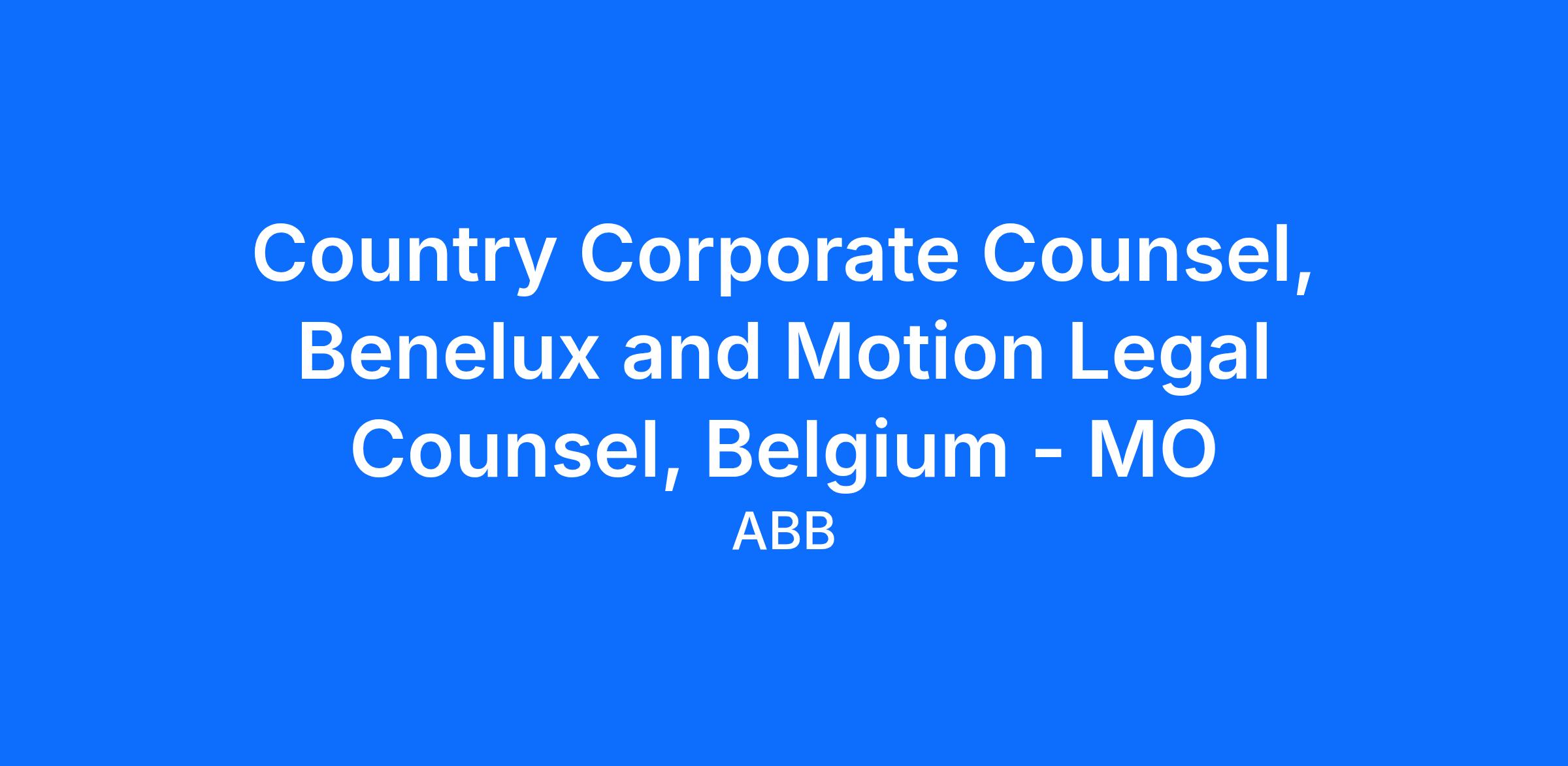 As part of our ambition growth, we are hiring a new Country Corporate Counsel for the Benelux region also acting as the Legal Counsel for the Motion business in Belgium, with preferred locations in Belgium or the Netherlands, close to our ABB office locations.
