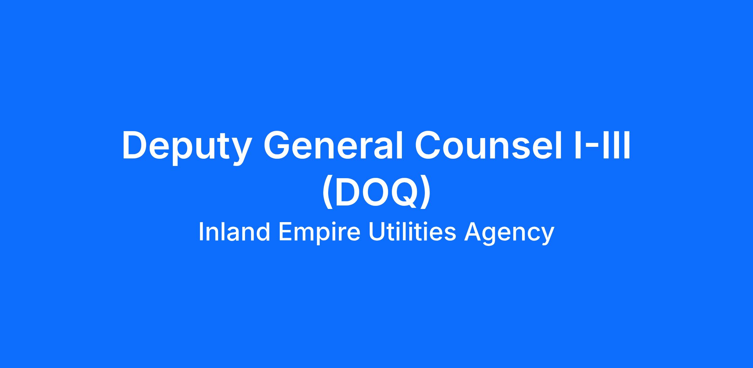 Are you an attorney seeking a meaningful opportunity in public service? The Agency is looking for a knowledgeable and collaborative attorney to serve as Deputy General Counsel I/II/III. Reporting to the General Counsel, this position plays a vital role in providing sound legal advice that advances the Agency’s mission, protects its interests, and ensures compliance with applicable laws and regulations. In this role, you will conduct complex legal research, draft and review contracts, policies, resolutions, and other legal documents, and evaluate Agency actions for legal sufficiency. You will provide practical and strategic guidance to departments and executive leadership while supporting litigation and administrative proceedings across a wide range of public agency matters, including public contracting, environmental compliance, water law, public records, ethics, employment law, and regulatory requirements.
