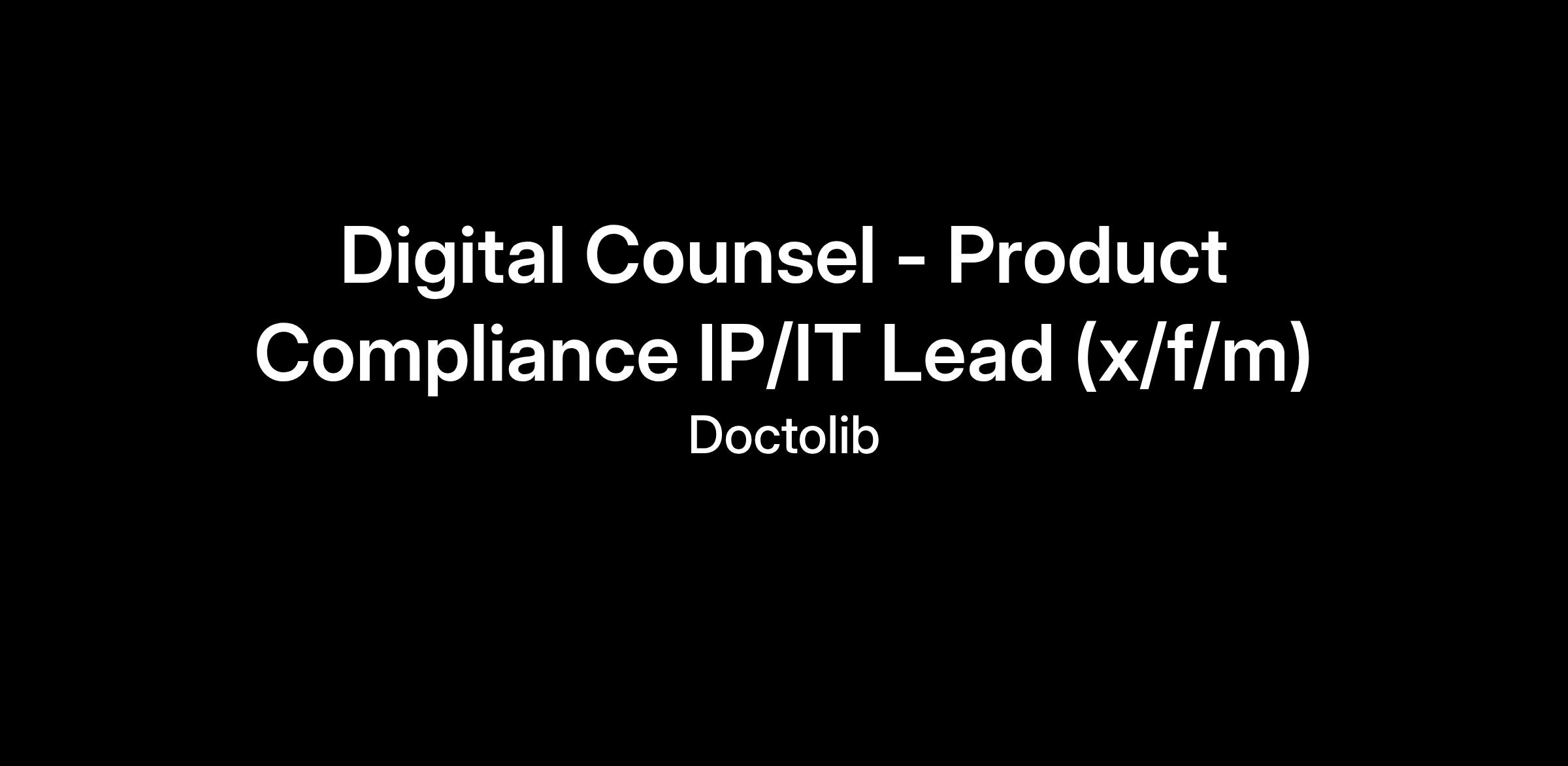 At Doctolib, our Product Compliance team is at the heart of innovation. We collaborate closely with our Tech & Product teams to develop groundbreaking, pragmatic, and sustainable legal solutions across all our products. We are pioneering the integration of artificial intelligence into our product suite, offering you the chance to work on cutting-edge e-health projects and be part of Doctolib's transformative journey. As our Lead Legal Counsel, you’ll play a pivotal role in shaping our approach to AI and digital matters, with a specific focus on intellectual property, IT contracts, and platform compliance matters. Your mission will be to ensure our innovations are built on solid legal foundations.You’ll work hand-in-hand with Product, Tech, and Business teams to support our rapid growth and deliver pragmatic, business-oriented solutions.