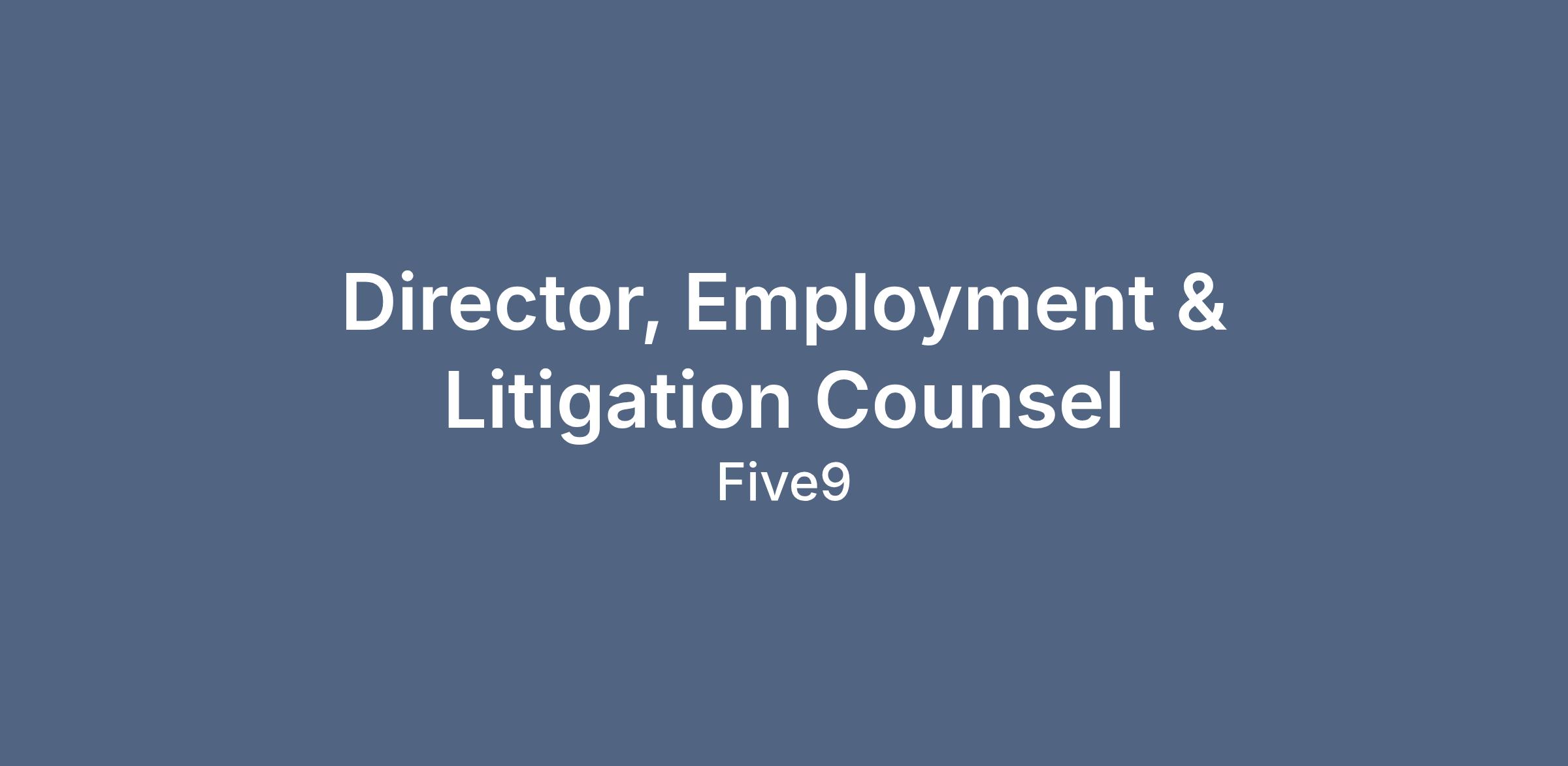 Five9 is seeking a highly strategic Director, Employment and Litigation Counsel to partner with the People team as lead advisor on global employment and risk-related matters, as well as manage Five9’s litigation and disputes and identify, assess and mitigate potential risks.