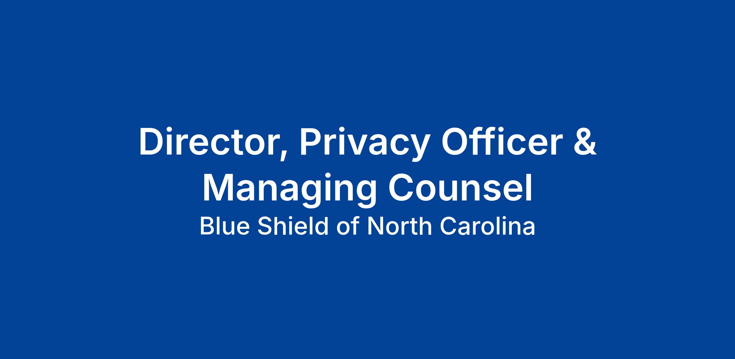 The Director of Managing Counsel will oversee the delivery of legal services and advice for the Company, acting as the main attorney for Blue Cross NC’s Privacy Program. This role manages both attorneys and non-attorneys and oversees Blue Cross NC’s Privacy Program related to safeguarding employee, customer and corporate information pursuant to legal, regulatory and contractual requirements and standards that govern Privacy, and reports directly to the Vice President of the Legal Department & Deputy General Counsel. The Managing Counsel brings expertise in several areas of law essential to both the Company and its subsidiaries, works closely with Company Officers and senior executives, and leads the team within the Legal Department.What You’ll Do