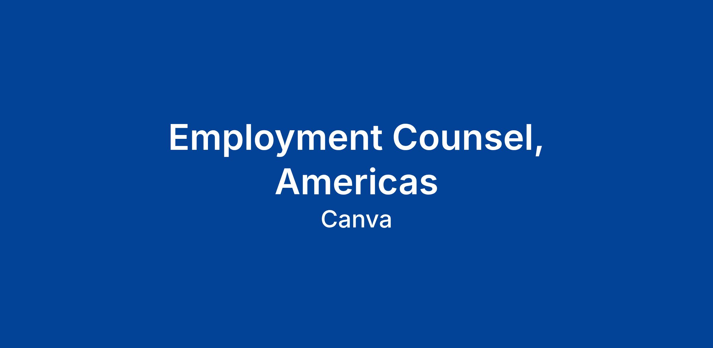 Canva is looking for an employment lawyer to join our dynamic team. Reporting directly to the Senior Employment Counsel for the Americas (based in San Francisco), this role offers the opportunity to work in a highly motivated, closely-knit, and collaborative team.