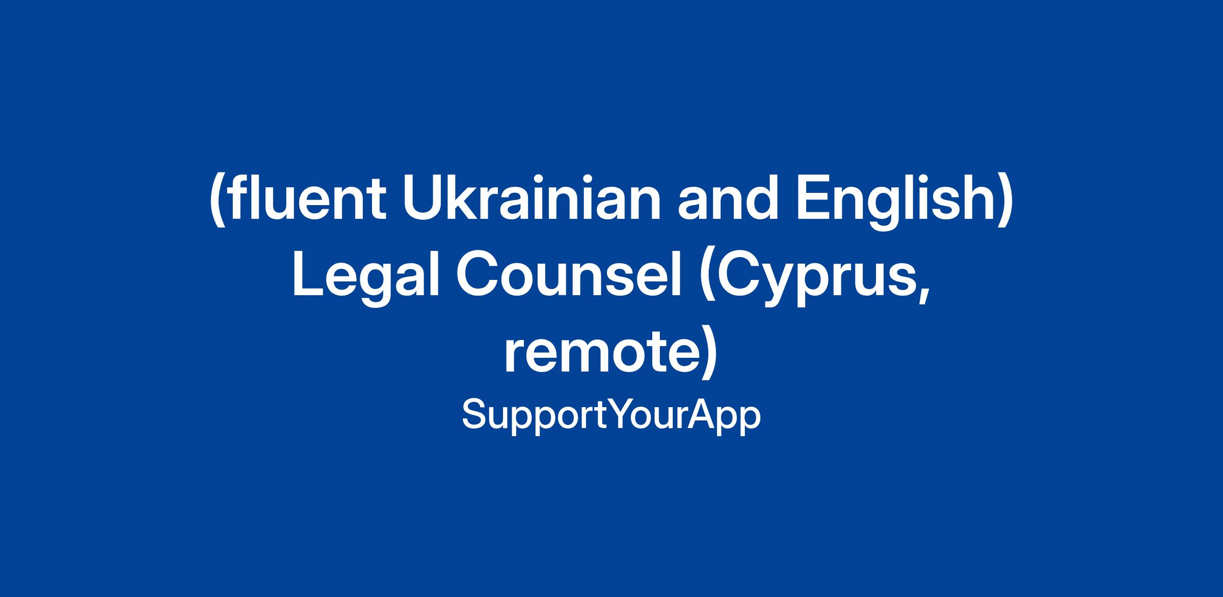 (fluent Ukrainian and English) Legal Counsel (Cyprus, remote)