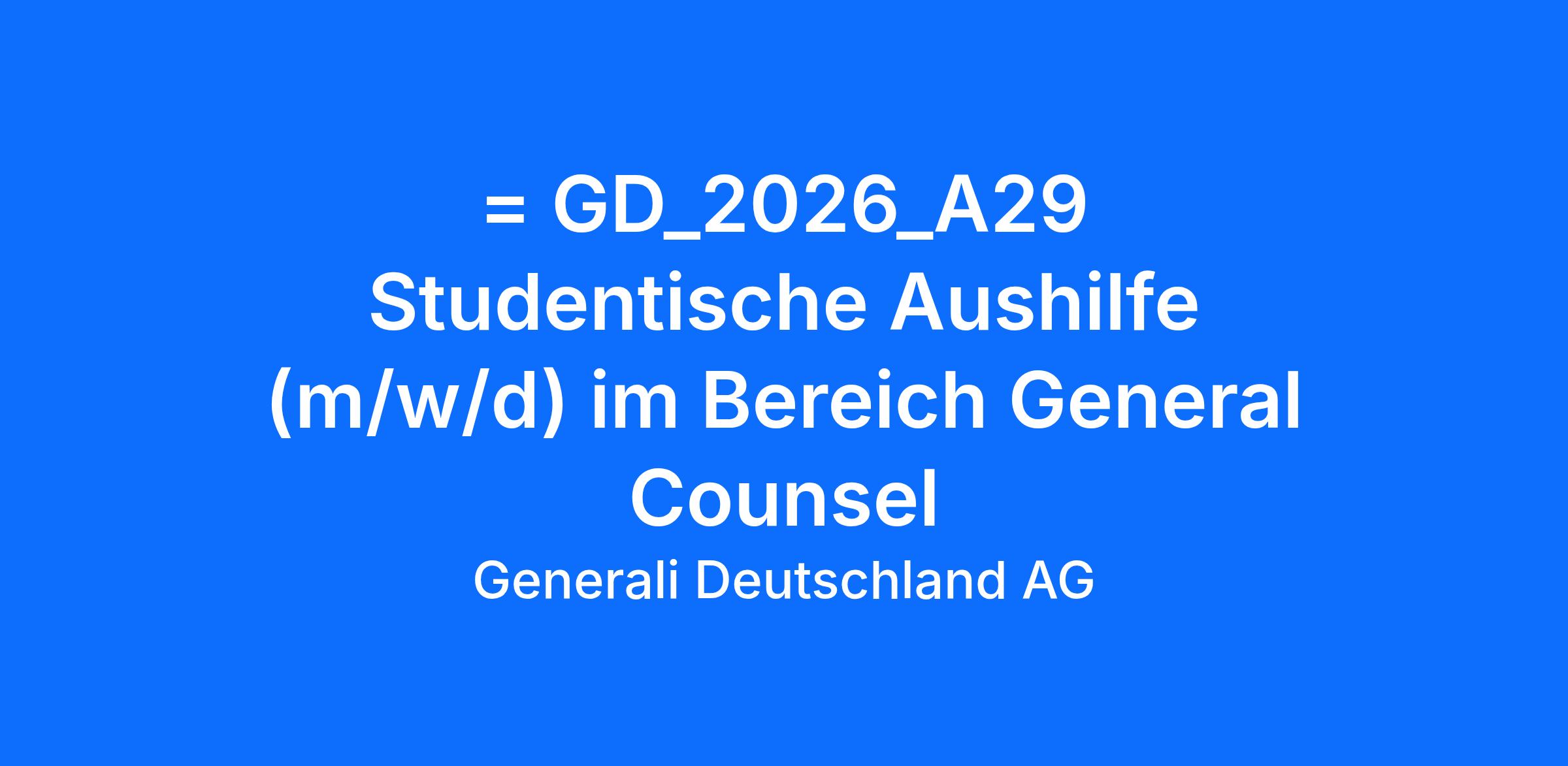 Zur Verstärkung der Abteilung General Counsel (Rechtsabteilung) am Standort Köln suchen wir Dich zum nächstmöglichen Zeitpunkt als studentische Aushilfe (m/w/d) im Team Commercial Law.